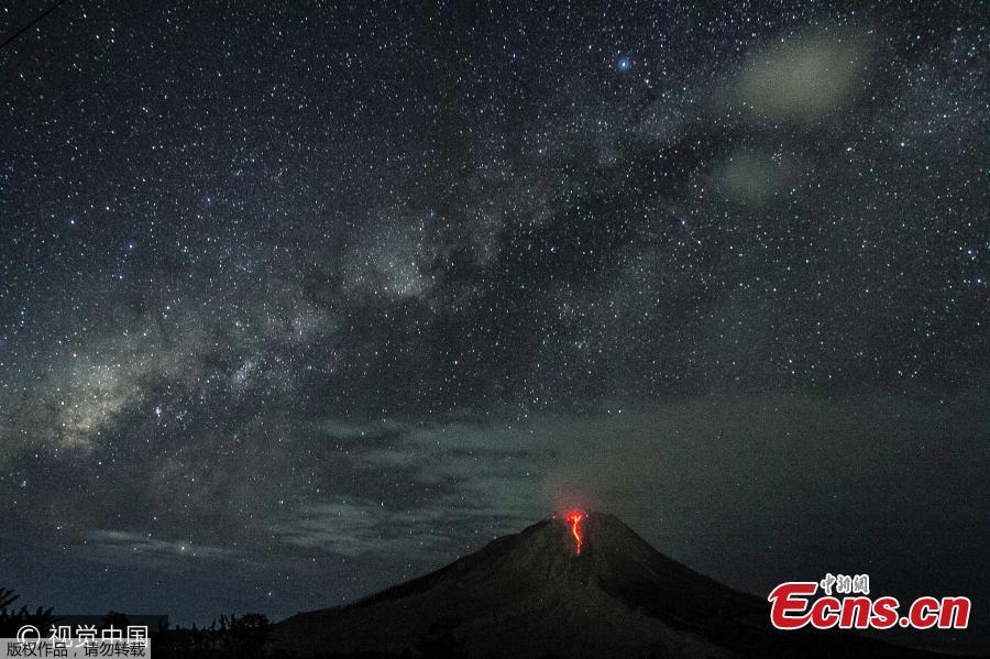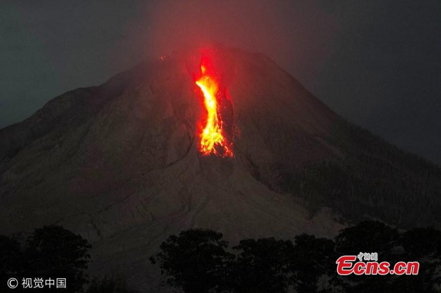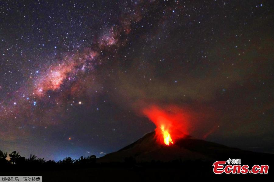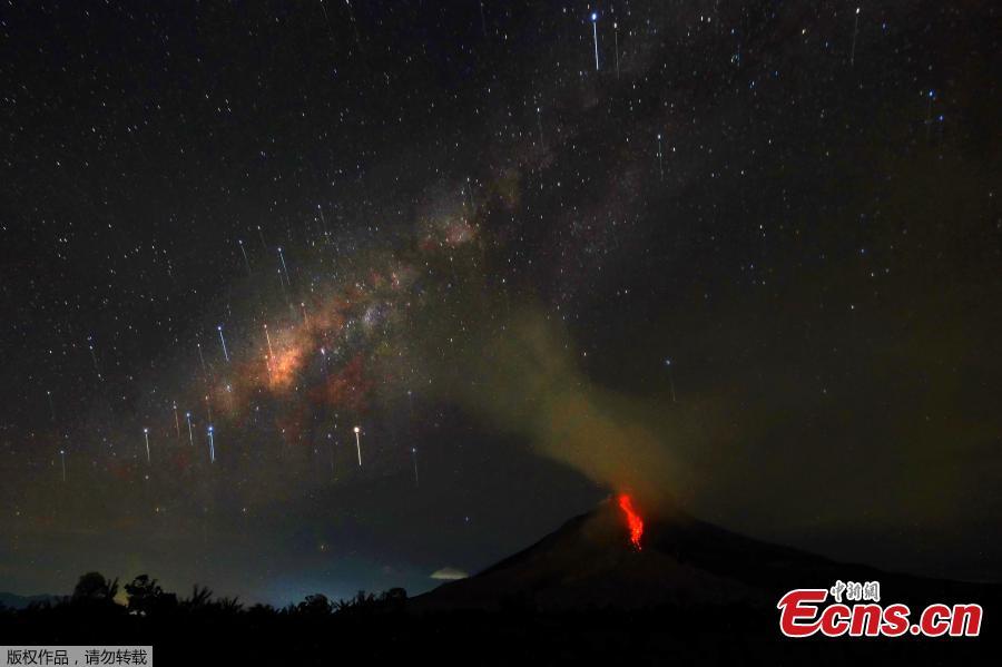 A long-exposure picture shows Mount Sinabung spewing out hot lava in Karo, North Sumatra, Indonesia, July 30, 2017. Sinabung roared back to life in 2010 for the first time in 400 years. After another period of inactivity it erupted once more in 2013 and has remained highly active since. (Photo/Agencies)