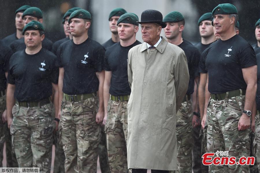Britain's Prince Philip, in his role as Captain General, Royal Marines, attends a Parade to mark the finale of the 1664 Global Challenge, on the Buckingham Palace Forecourt, in central London, Britain August 2, 2017. The 96-year-old husband of Britain's Queen Elizabeth, made his final solo appearance at the official engagement on Wednesday, before retiring from active public life. (Photo/Agencies)