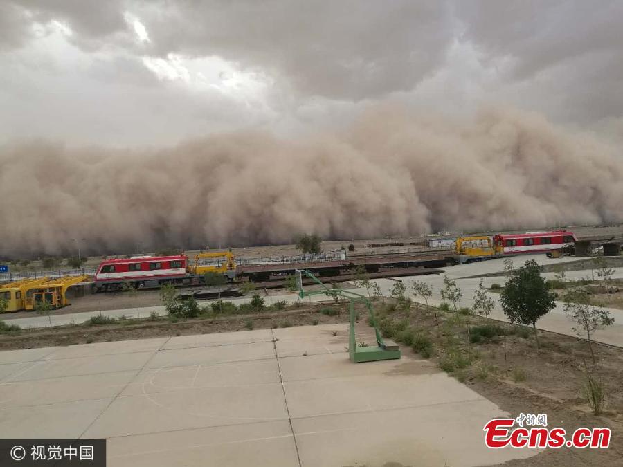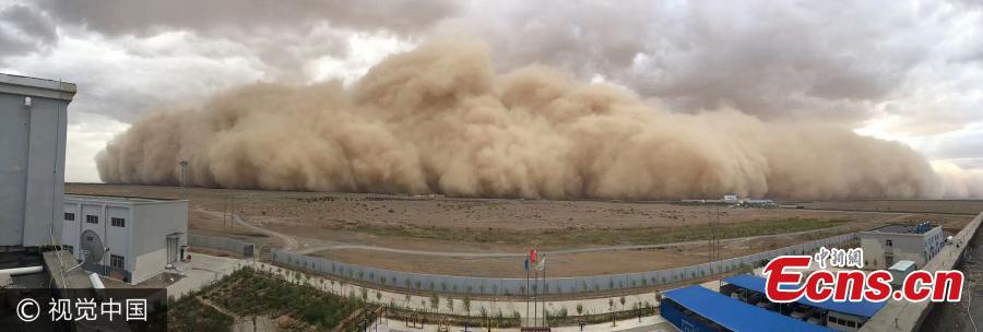 Sand storm attacks Ejina Banner, Alashan, Inner Mongolia of China on Wednesday afternoon, August 2, 2017. (Photo/VCG)