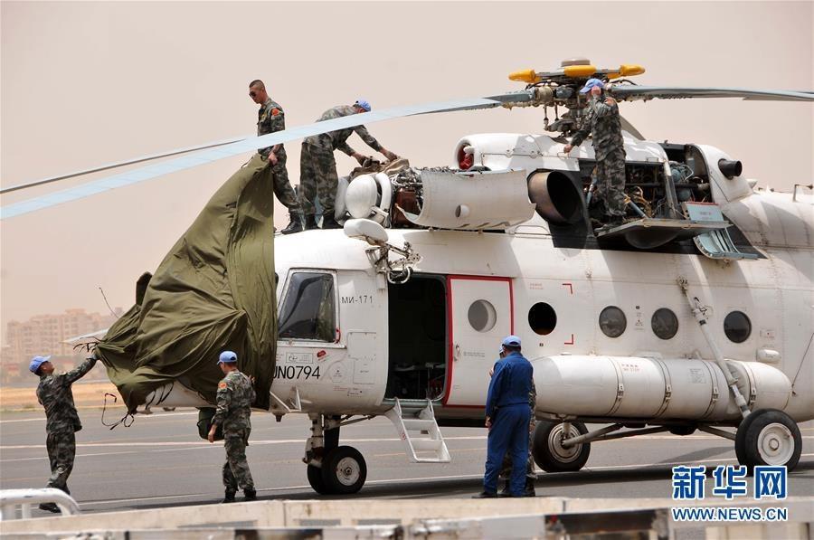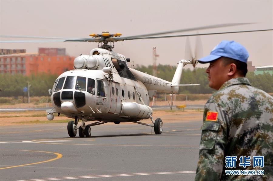 The first UN peacekeeping helicopter unit from China made its first flight at Sudan's Khartoum International Airport on August 1, 2017. (Photo/Xinhua)