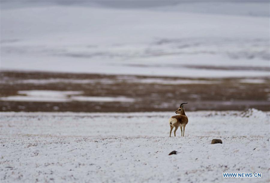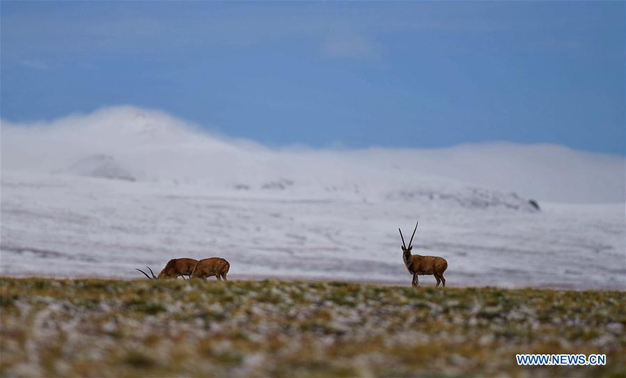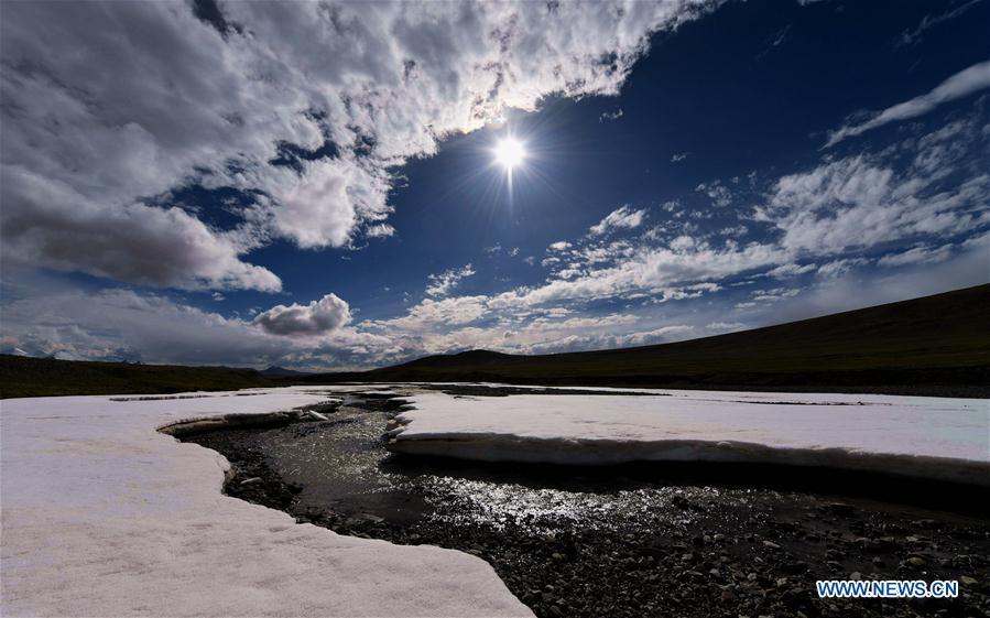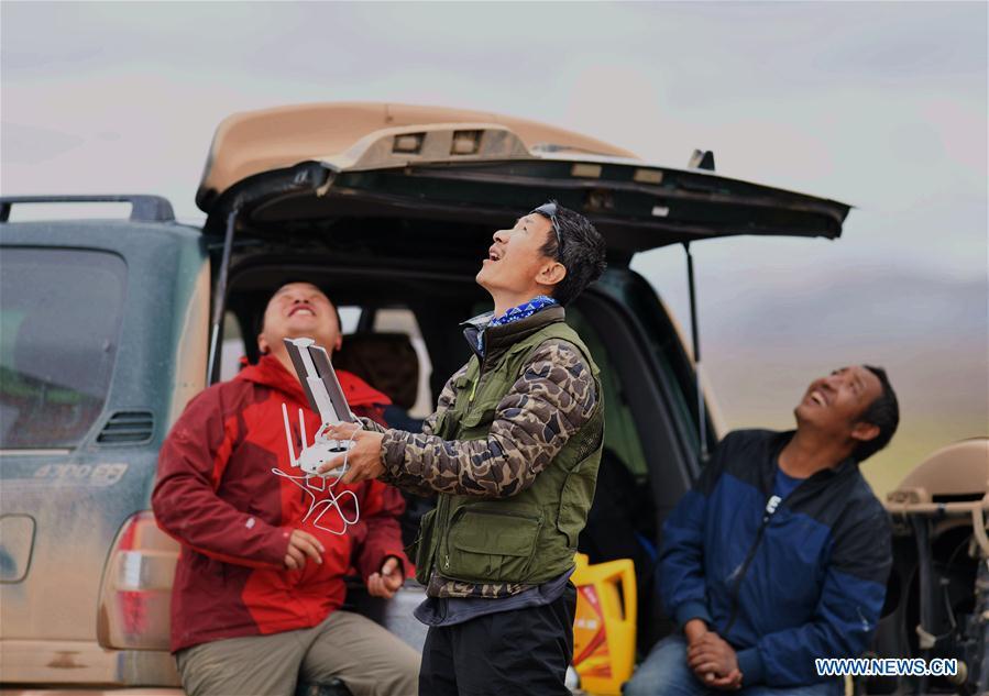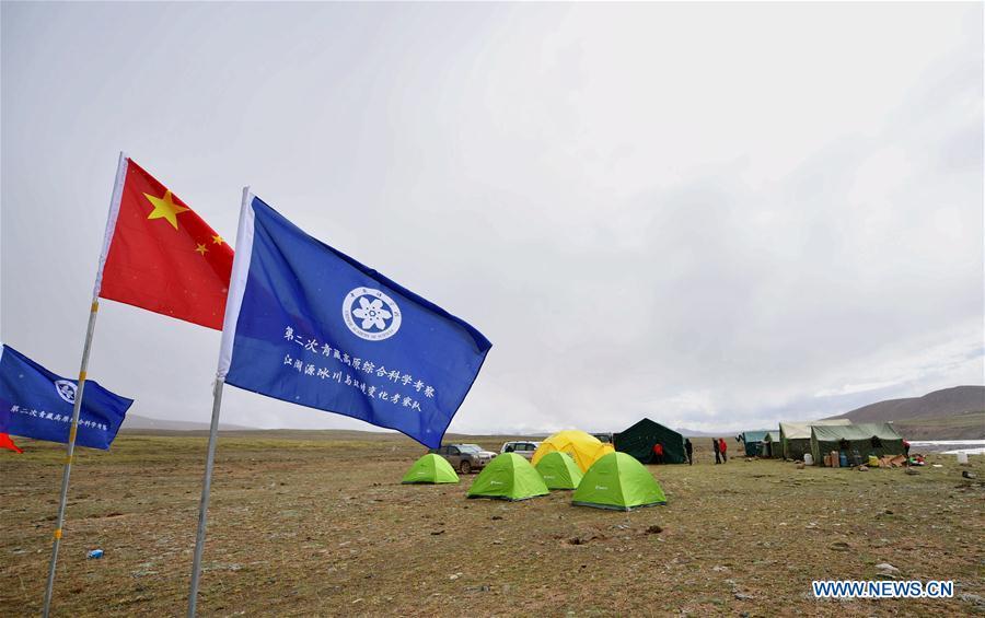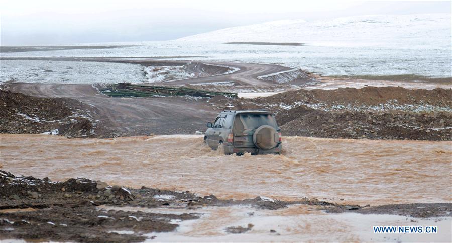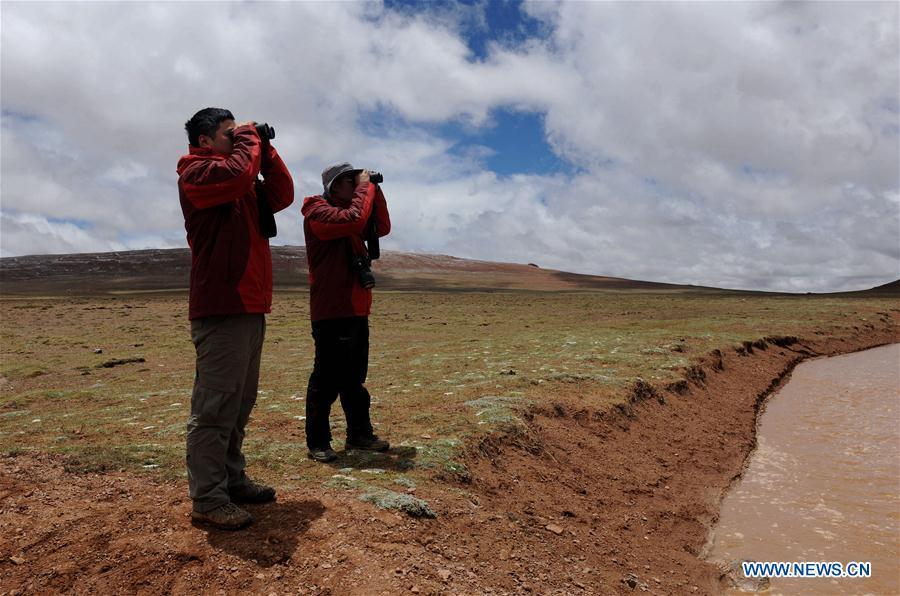 A car is seen driving through a river in the Qiangtang nature reserve, southwest China's Tibet Autonomous Region, June 23, 2017. China began its second scientific expedition to the Qinghai-Tibet Plateau this June to study changes in climate, biodiversity and environment over the past decades. The last expedition of similar scale was conducted in the 1970s. (Xinhua/Jigme Dorje)