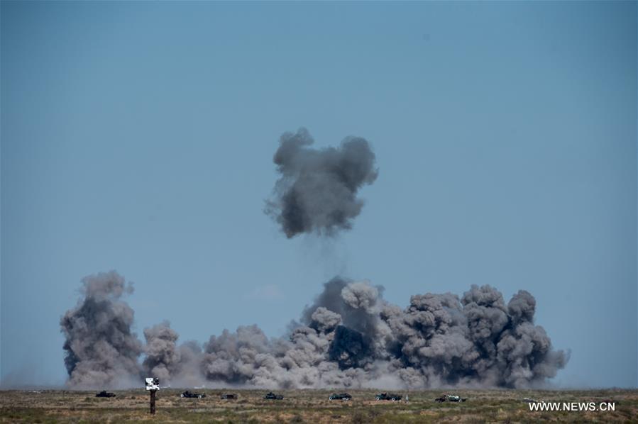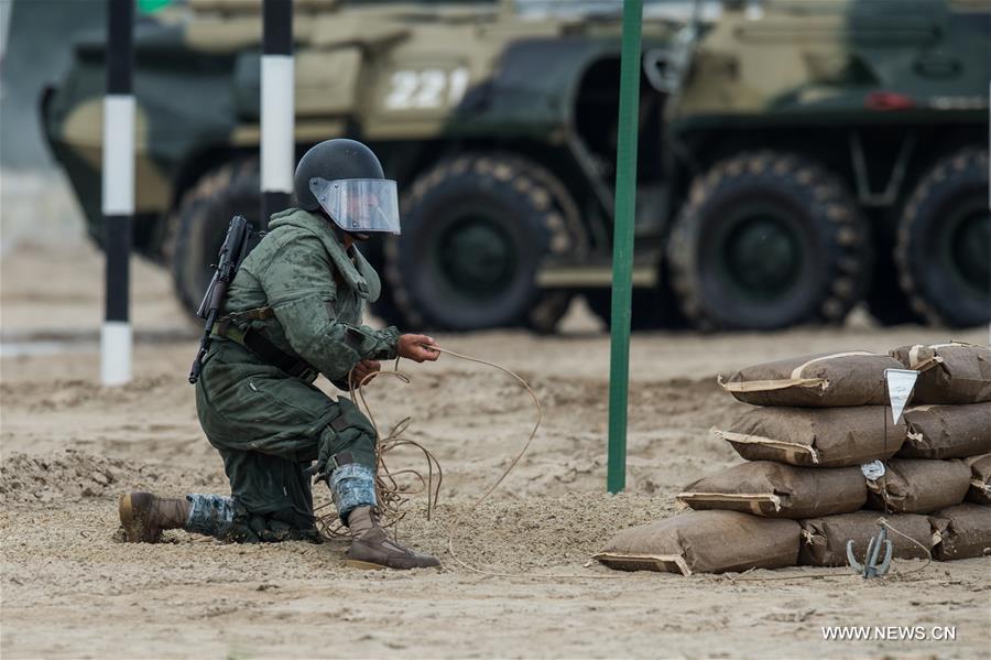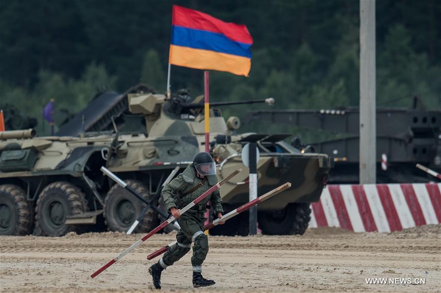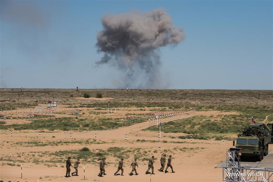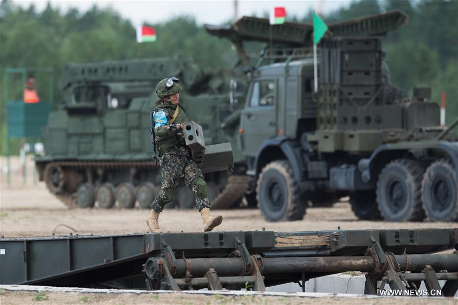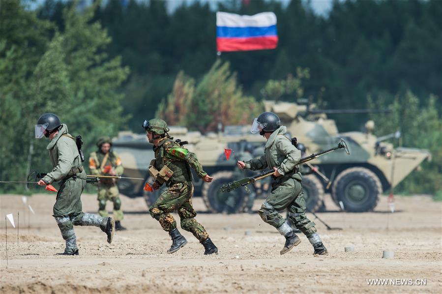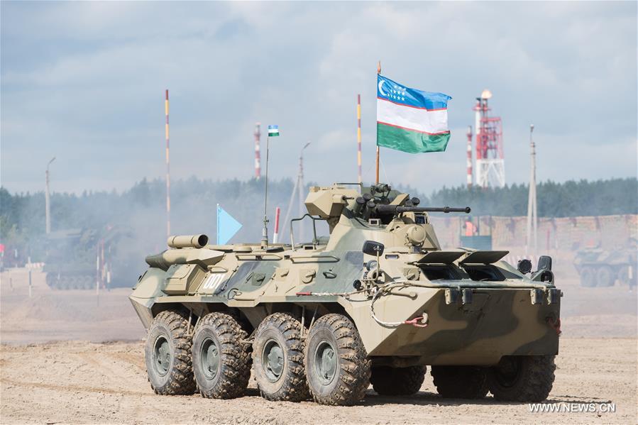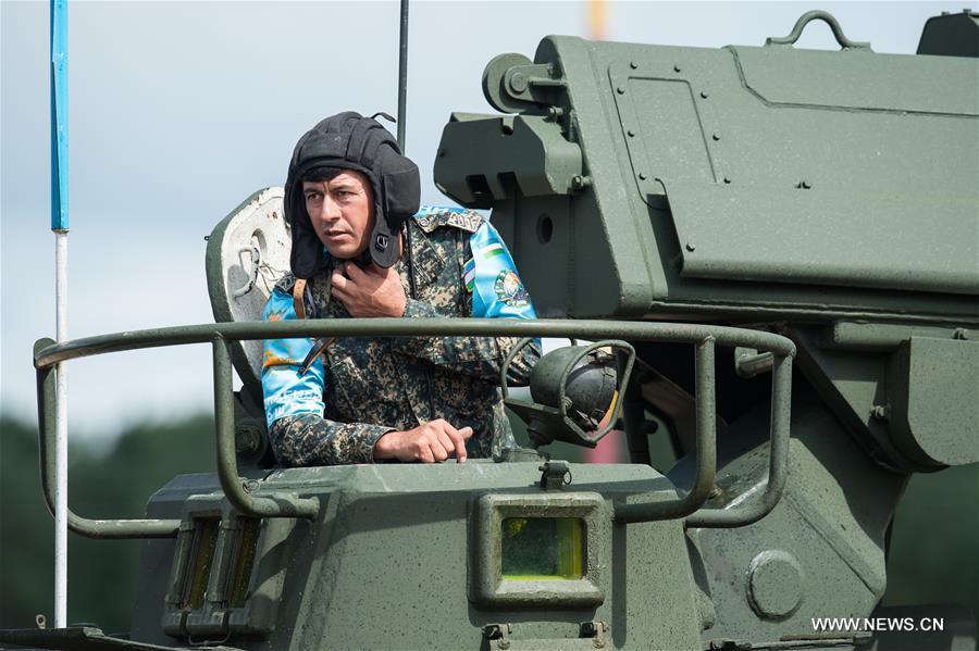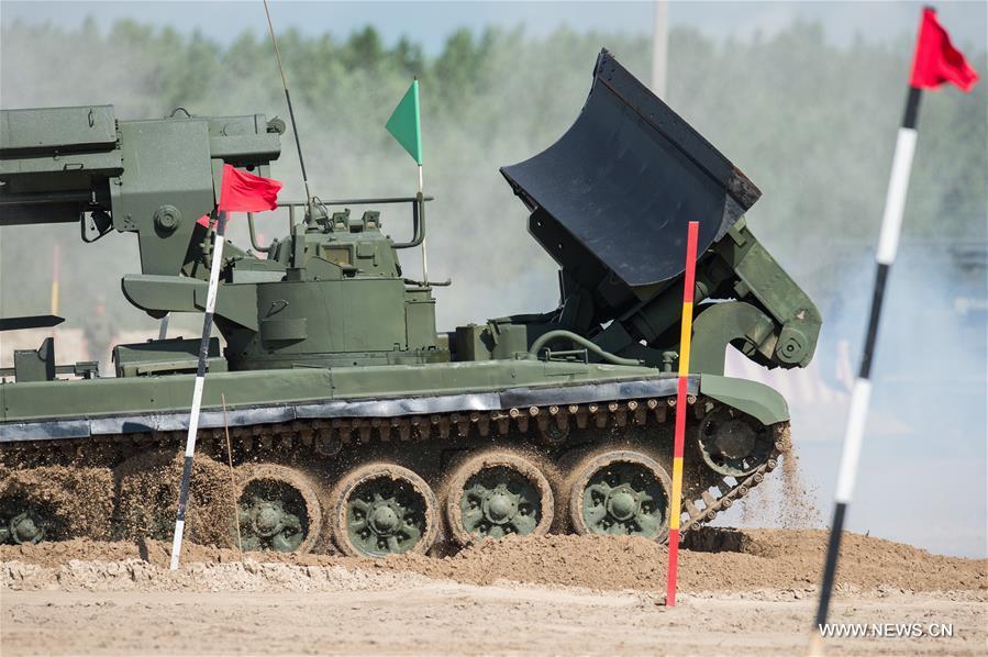 A T-72 tank is seen during the Safe Route competition of the International Army Games 2017 in Tyumen, Russia, on Aug. 6, 2017. The International Army Games 2017 will be held until Aug. 12.(Xinhua/Evgeny Sinitsyn)