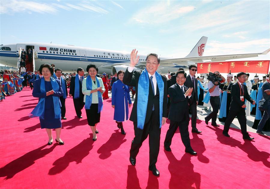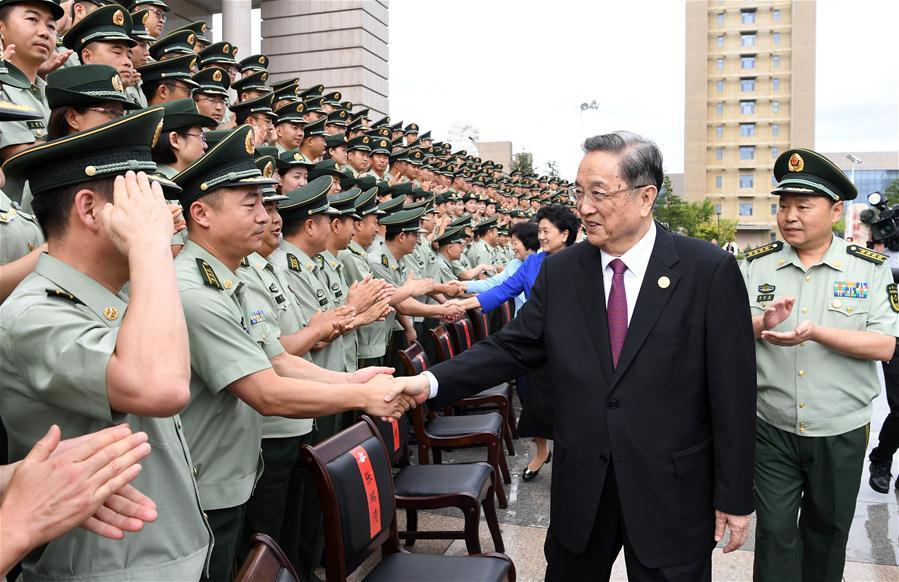 Yu Zhengsheng, chairman of the National Committee of the Chinese People's Political Consultative Conference, meets with retired officials and people of various ethnic groups and from all walks of life, in Hohhot, north China's Inner Mongolia Autonomous Region, Aug. 7, 2017. (Xinhua/Zhang Ling)