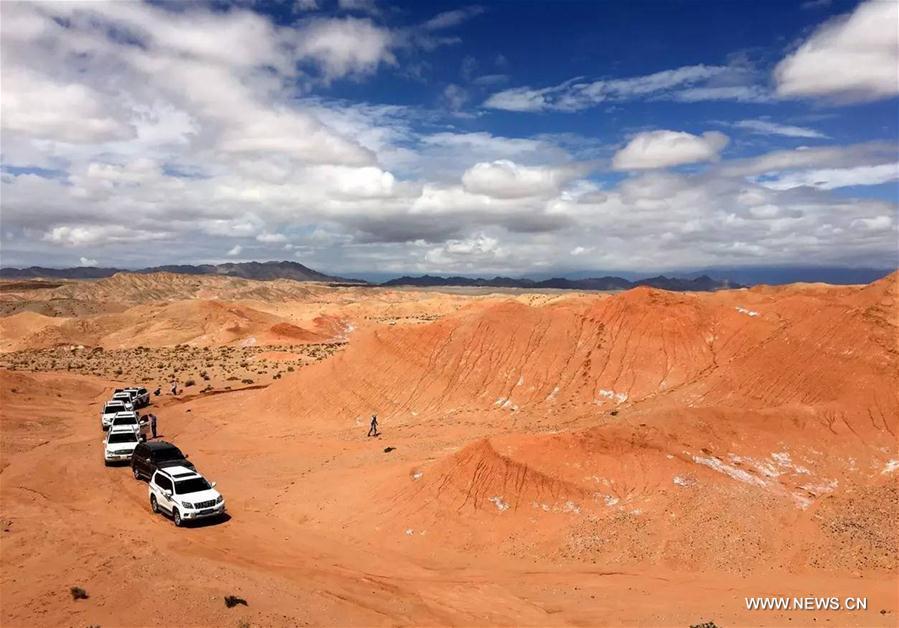 Photo taken on July 24, 2017 shows a view of the red cliff region in Da Qaidam (also known as Dachaidan) district in the Mongolian-Tibetan Autonomous Prefecture of Haixi, northwest China's Qinghai Province. China's first Mars simulation base will be established here according to the local government. (Xinhua/Zhang Qingzhe)