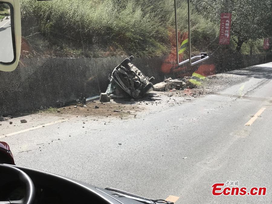 A road is cracked after an earthquake in Jiuzhaigou County, Southwest China’s Sichuan Province, Aug. 9, 2017. At least 13 people were killed and 175 injured after the earthquake jolted Jiuzhaigou County at 9.19pm. (Photo: China News Service/Feng Zheng)