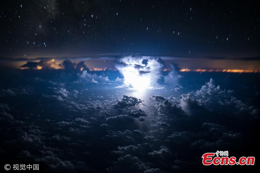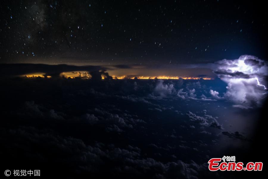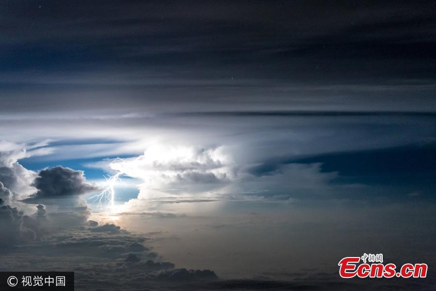 Santiago Borja Lopez captures amazing lightning storms and clouds from a commercial Boeing 767-300ER. Based in Quito, Ecuador, his work for a major South American airline often involves flying over regions that experience amazing natural phenomenon. He captured an impressive lightning bolt arcing over from a cloud towards the earth. (Photo/VCG)