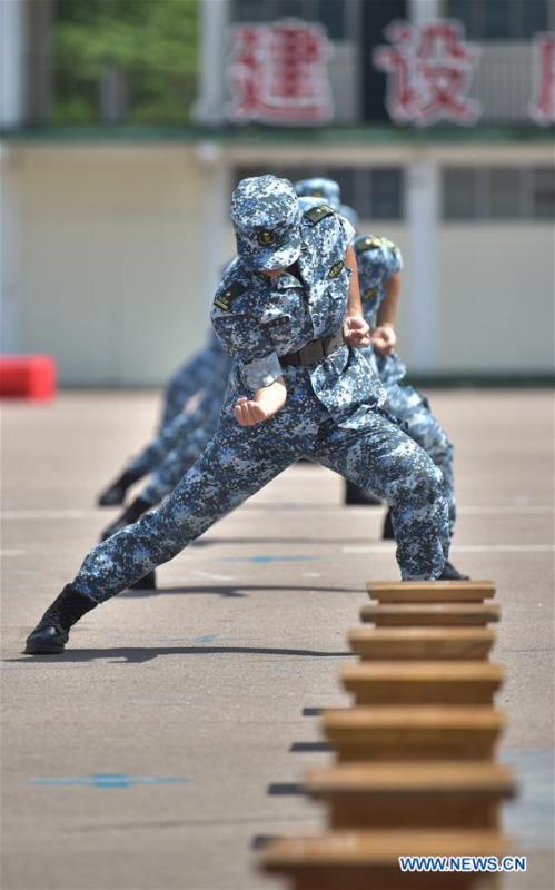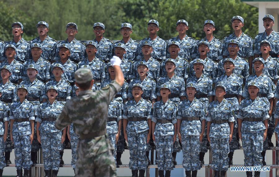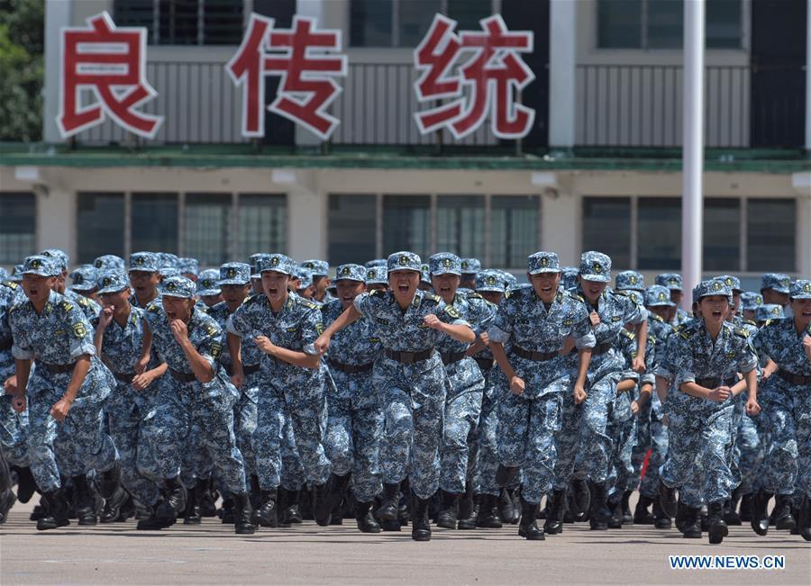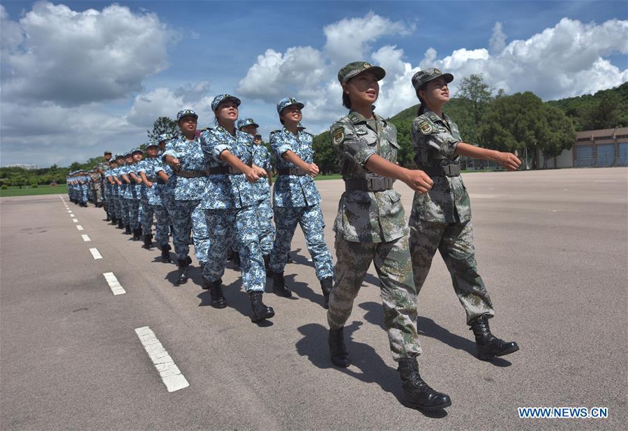 Students participate in the graduation ceremony of Hong Kong Tertiary Military Training Camp in south China's Hong Kong, Aug. 13, 2017. The graduation ceremony of the 7th Hong Kong Tertiary Military Traning Camp was held at San Wai Barracks of the Chinese People's Liberation Army (PLA) Garrison in the Hong Kong Special Administrative Region (HKSAR) on Sunday. About 140 students from over 10 Hong Kong universities received military trainings and experienced military life during the 11-day camp. (Xinhua/Wang Xi)