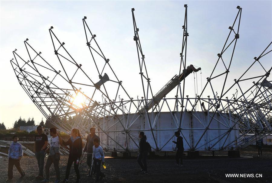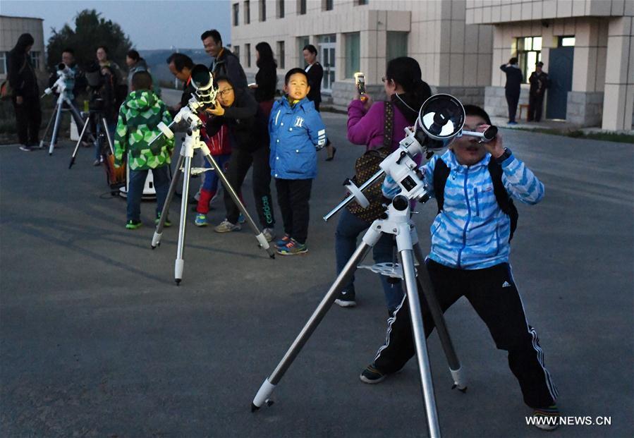A young observer searches for the constellation during a visit organized by Xinjiang Astronomical Society at Nanshan observation station of Xinjiang Observatory in Urumqi, capital of northwest China's Xinjiang Uygur Autonomous Region, Aug. 13, 2017. Young amateurs gathered to observe the Perseid meteor shower at the observation station which serves as a national science education base. (Xinhua/Wang Fei)