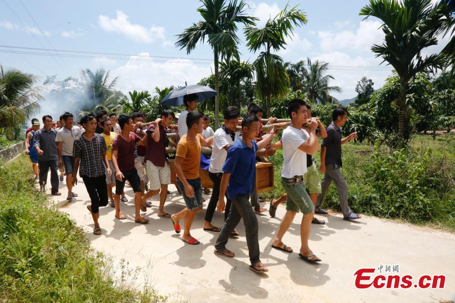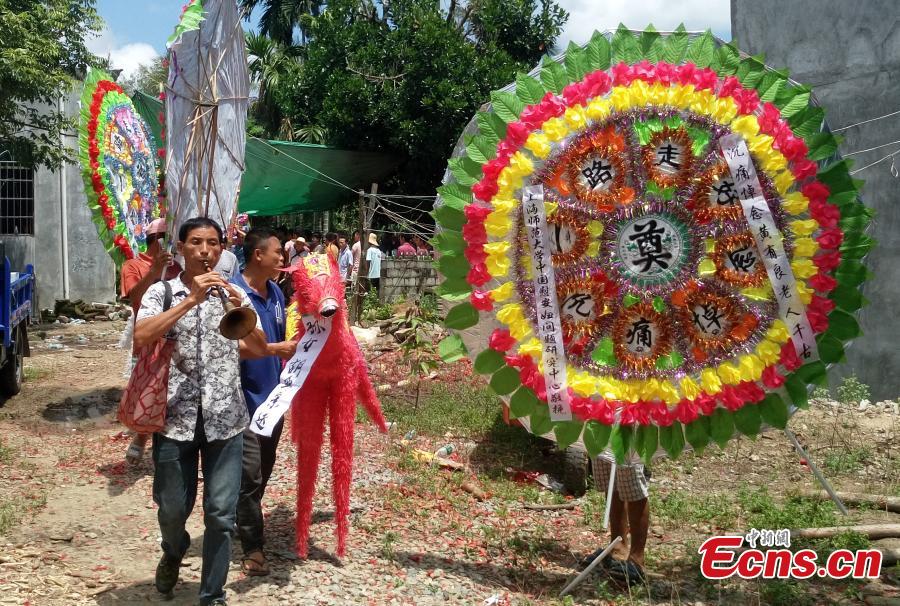 A funeral ceremony is held for Huang Youliang in Yidui Village, Lingshui Li Autonomous County, South China’s Hainan Province, Aug. 14, 2017. Huang died before the release of a documentary telling her story, and without receiving the apology she had longed for most of her lifetime. As the documentary Twenty-Two, which features China's "comfort women" during the Second World War, drew tears at cinemas on Monday, 90-year-old Huang lay in a wooden coffin in her son's living room. (Photo: China News Service/Yin Haiming)