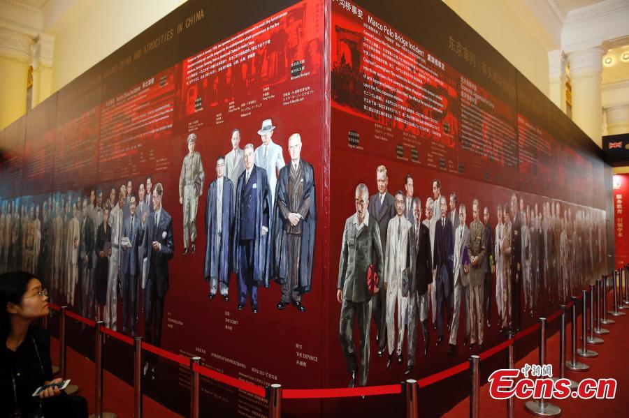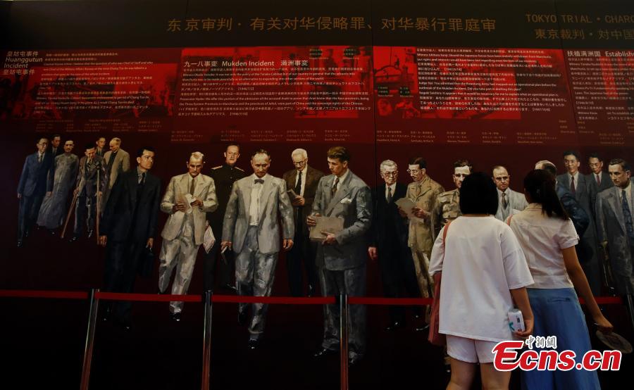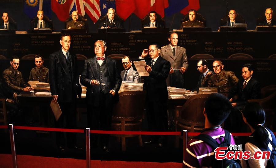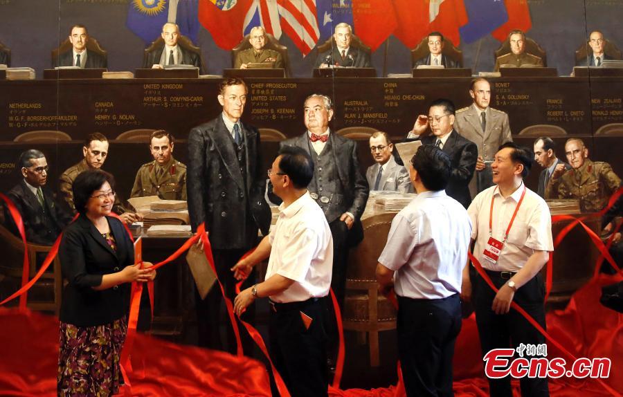 A giant painting depicting the International Military Tribunal for the Far East in Tokyo is on show at the Shanghai Book Fair, Aug. 16, 2017. The fair presented over 150,000 books from more than 500 publishers in China. (Photo: China News Service/Tang Yanjun)