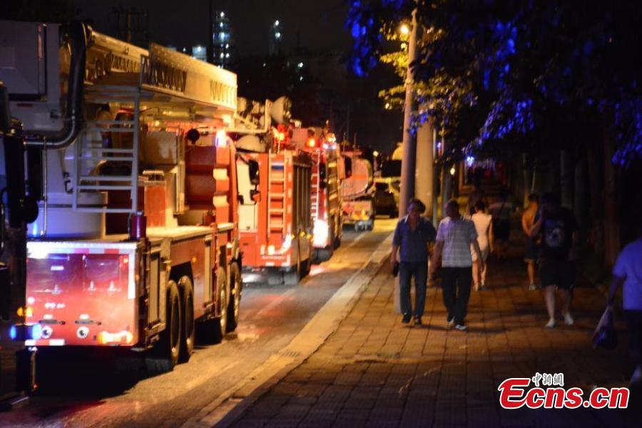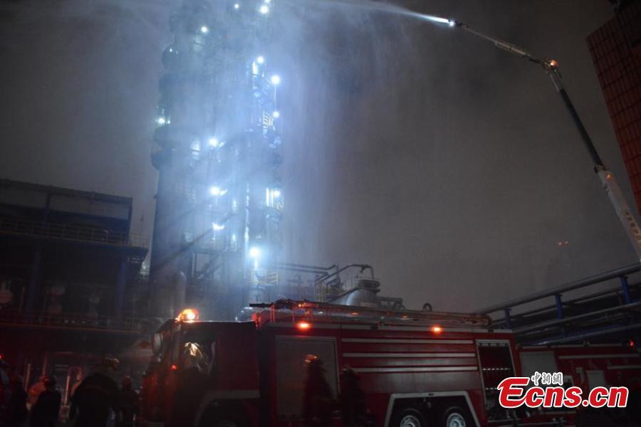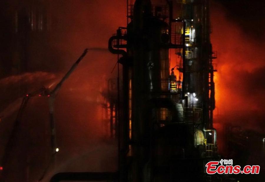 A fire breaks out in a chemical plant, a subsidiary of state-owned PetroChina in Dalian City, Northeast China's Liaoning Province, Aug. 17, 2017. The fire broke out at around 6:40 p.m. and was put out as of 10:50 p.m., according to Xinhua. No casualties have been reported. (Photo: China News Service/Liu Debin)