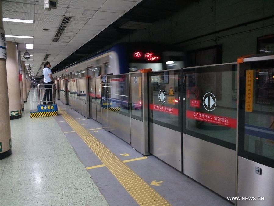 Passengers wait for their train at Chongwenmen Station on Line 2 of the subway in Beijing, capital of China, Aug. 20, 2017. By Sunday, all stations on Line 2 of Beijing Subway are enabled with safety doors. (Xinhua/Liu Xianguo)