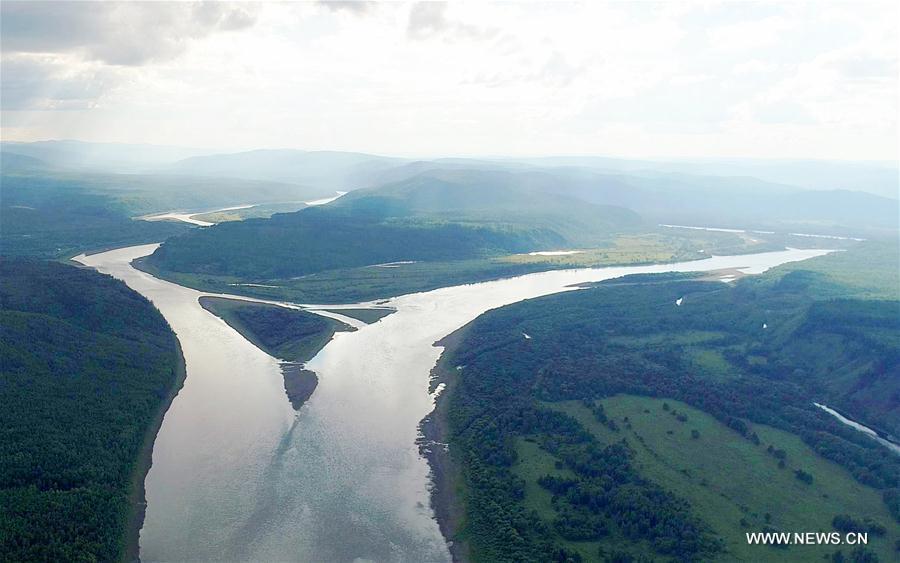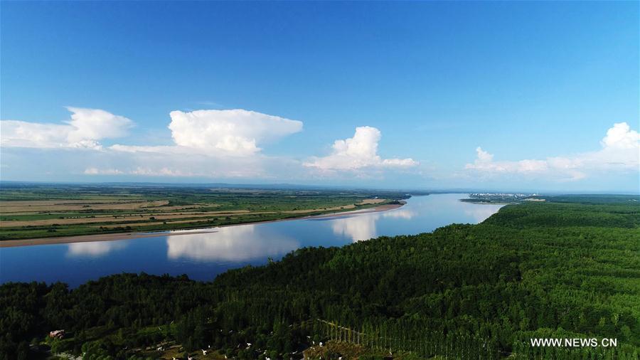 Photo taken on Aug. 2, 2017 shows the scenery of the Heilongjiang River in the working circle of Tuqiang forestry bureau, northeast China's Heilongjiang Province. (Xinhua/Wang Jianwei)