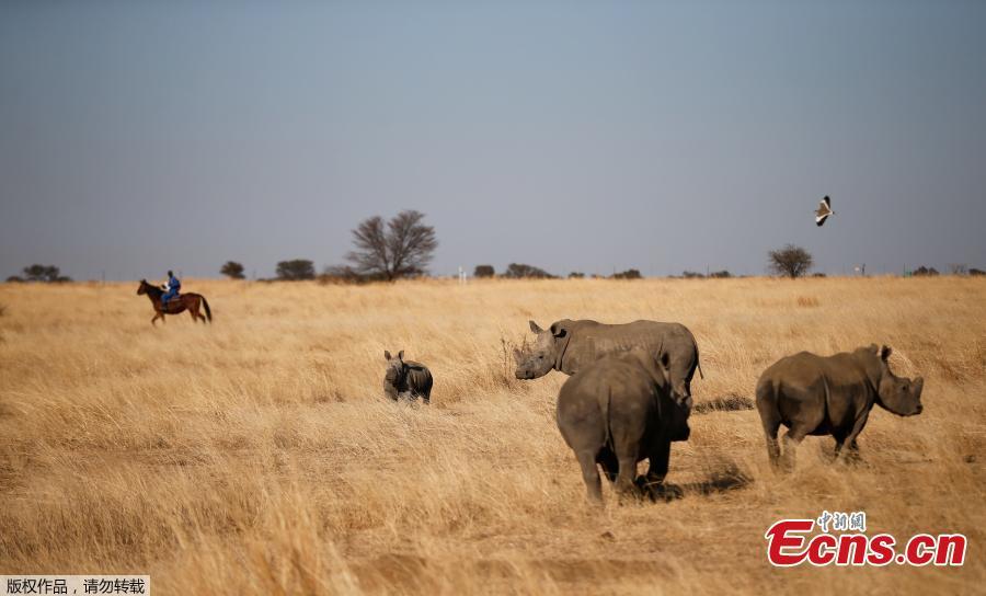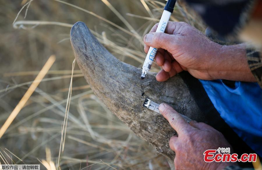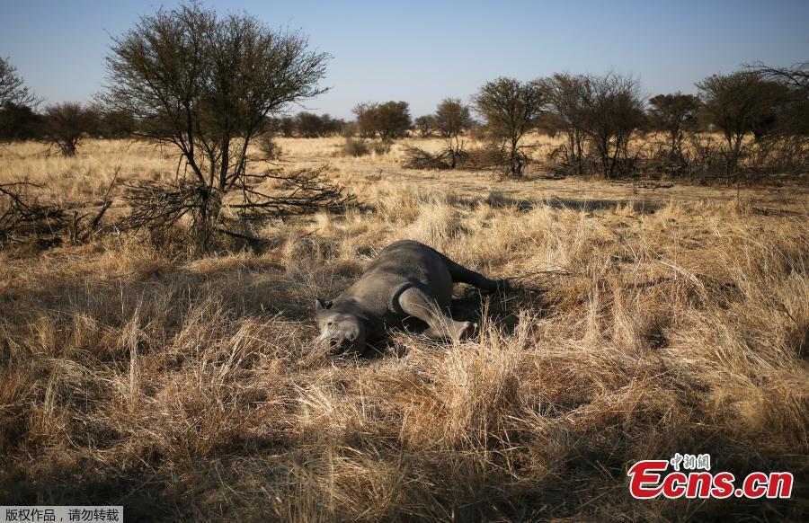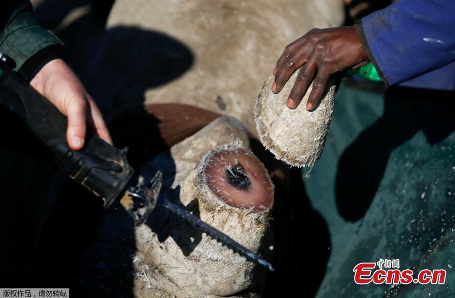 Workers hold a tranquillised rhino after it was dehorned in an effort to deter the poaching of one of the world's endangered species, at a farm outside Klerksdorp, in the north west province, South Africa, August 14, 2017. (Photo/Agencies)