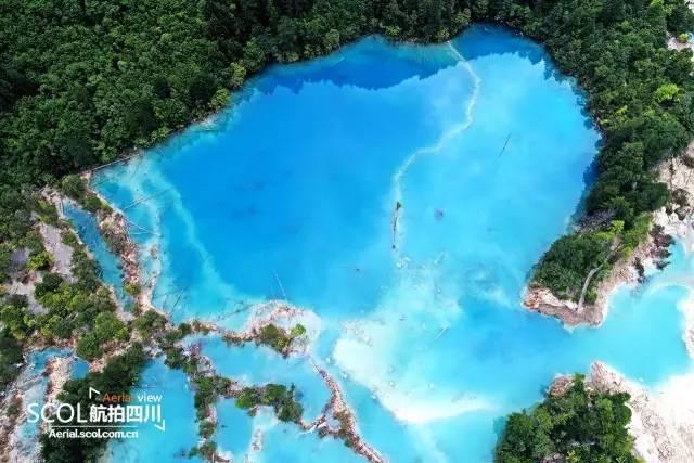 A bird's eye view of a lake in Jiuzhaigou National Park, southwest China's Sichuan Province, on August 23, 2017. The area was rocked by a 7.0-magnitude quake on August 8, causing many to fear that region's breathtaking scenery had been damaged forever. However, as the aerial photos shows, two weeks after the quake the UNESCO World Heritage site is regaining its beauty. (Photo/scol.com.cn)