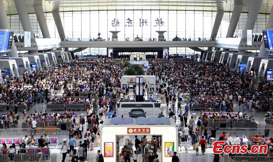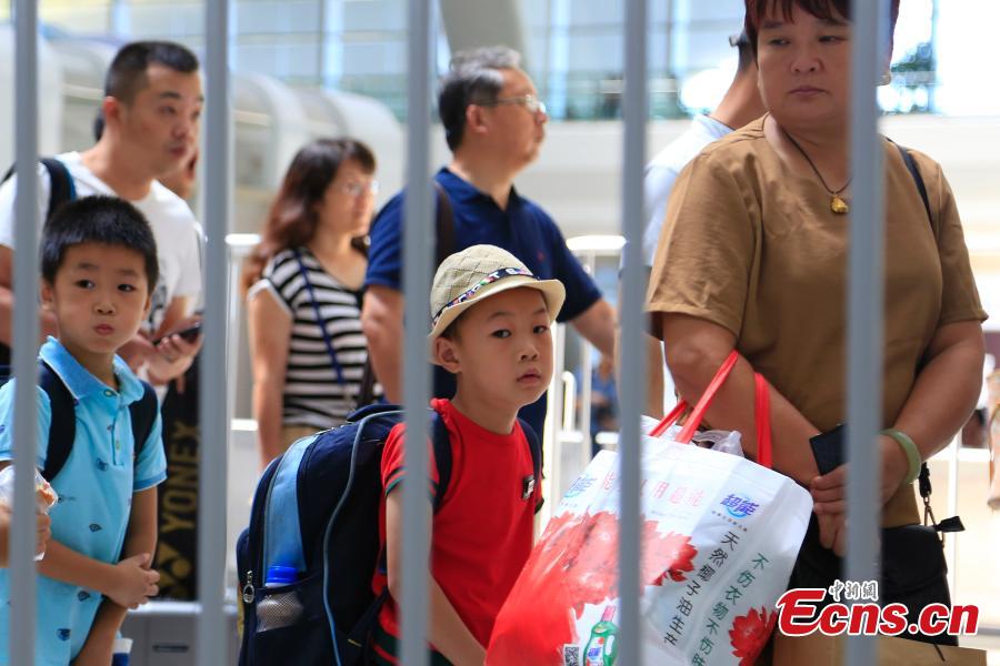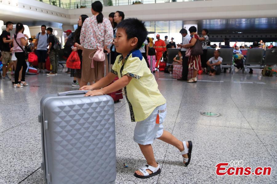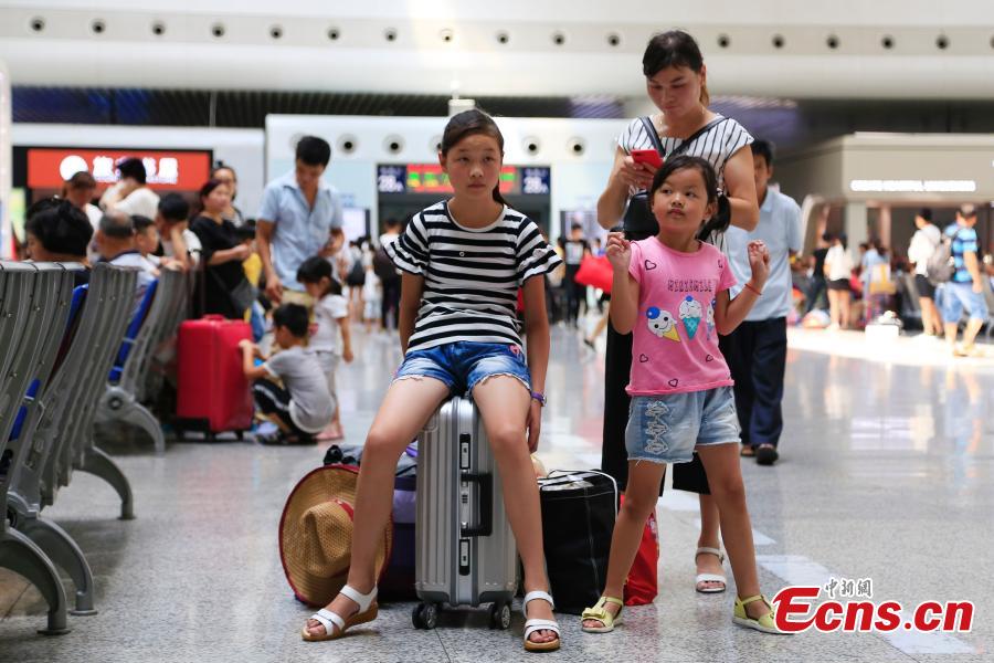 Children are among passengers at a railway station in Hangzhou City, the capital of East China’s Zhejiang Province, Aug. 24, 2017. During the summer vacation, many children came to the city because it is where their parents work, and now they are headed back to their hometowns as schools resume in Sept. Over the vacation period, a clear movement is seen of children either from rural areas to cities where parents work, or leaving cities for their rural hometowns because their working parents can't look after them in the city. The group has been dubbed “Little Migratory Birds”, meaning they move between places during the summer and winter vacations. (Photo: China News Service/Wang Yuan)