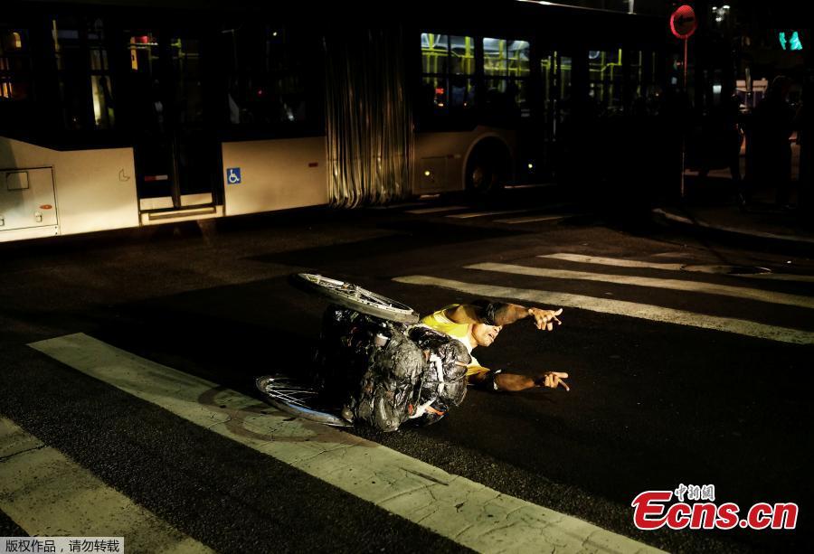 Elias, 43, nicknamed LA, who has polio, performs a dance with his wheelchair at a traffic light in the Paulista Avenue in Sao Paulo, Brazil, Aug. 23, 2017. (Photo/Agencies)