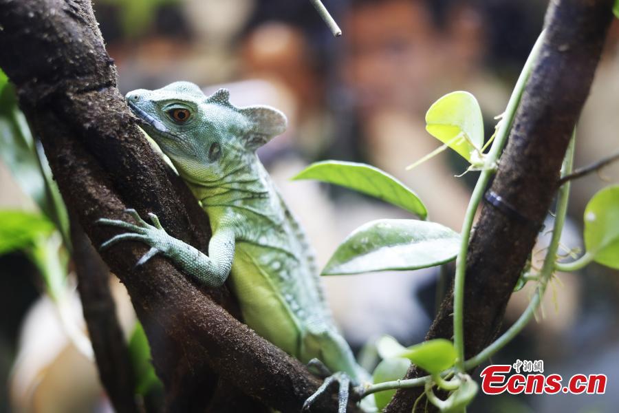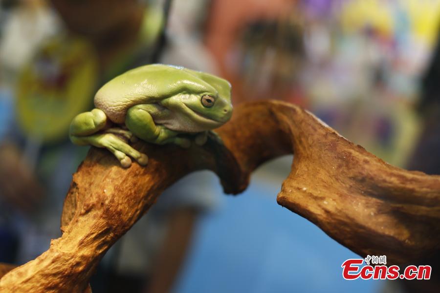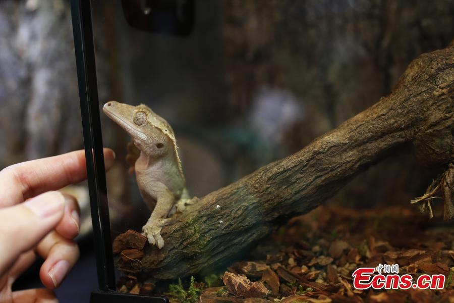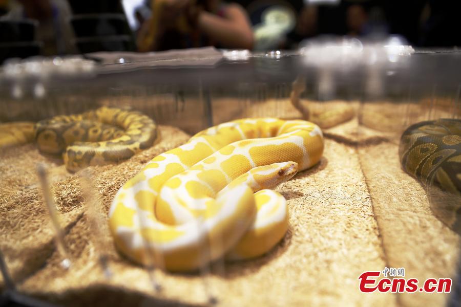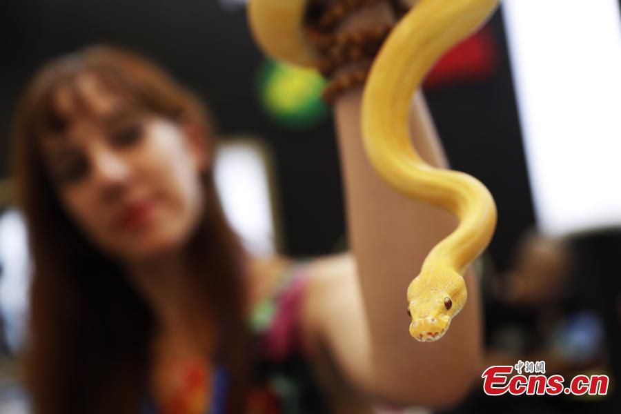 A woman shows a Burmese python at a pet show in Shanghai, Aug. 24, 2017. Reptiles have become the new favored pets among the younger generation, sources say. (Photo: China News Service/Zhang Hengwei)