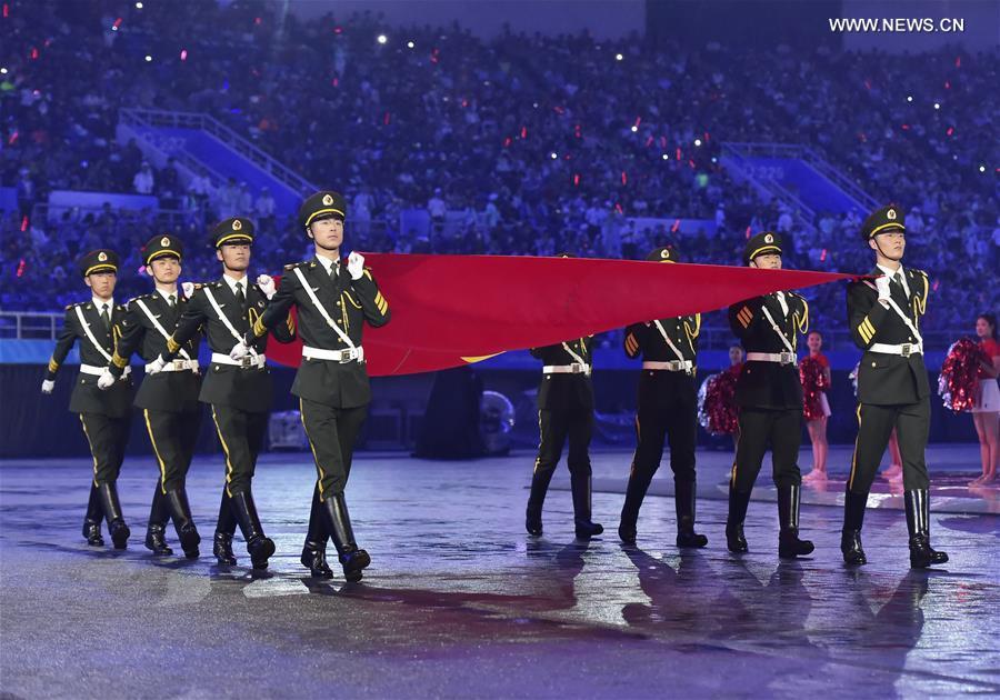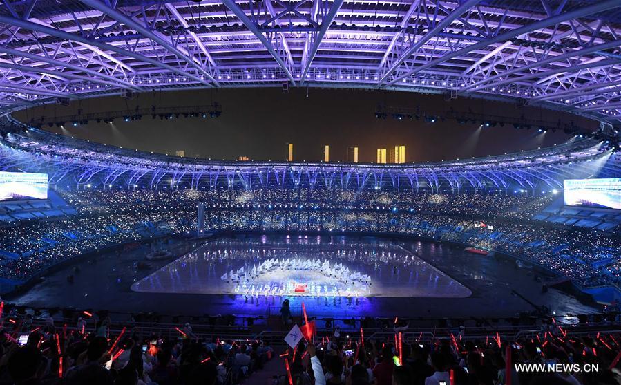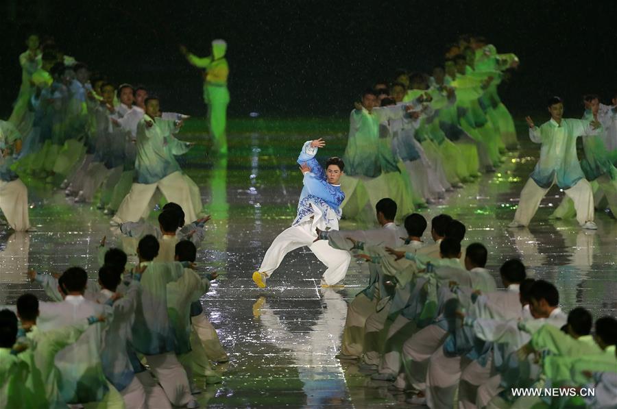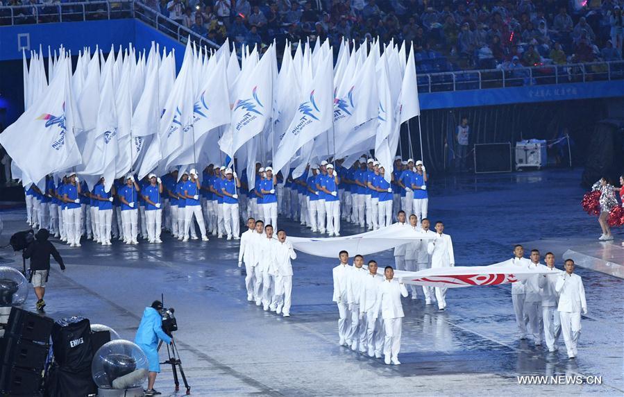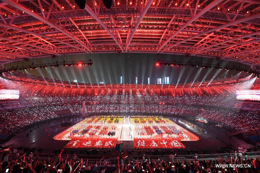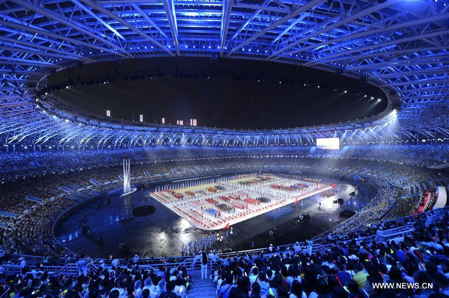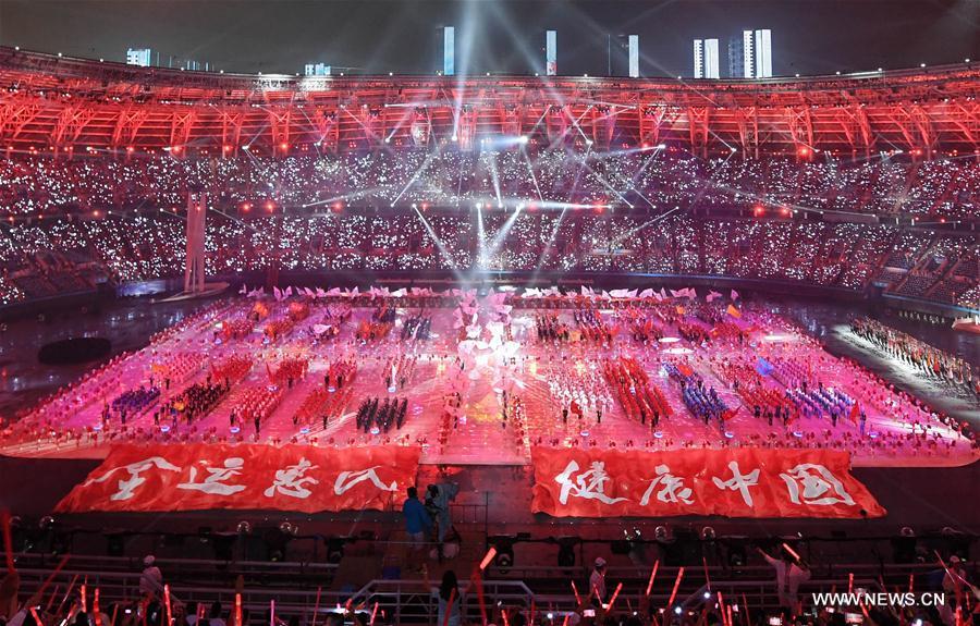 Photo taken on Aug. 27, 2017 shows the scene of the opening ceremony of the 13th Chinese National Games in north China's Tianjin Municipality. (Xinhua/Zhao Ge)