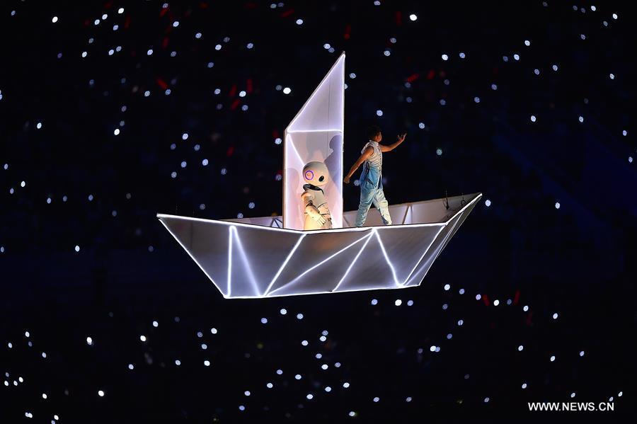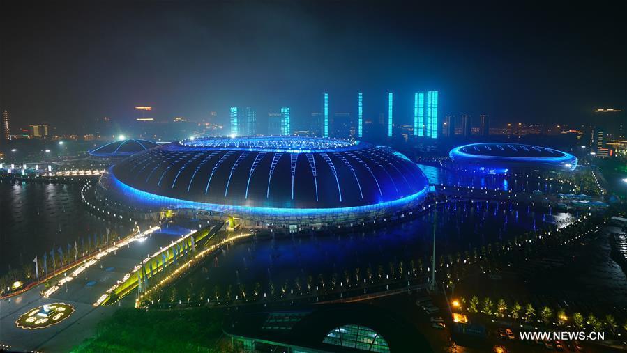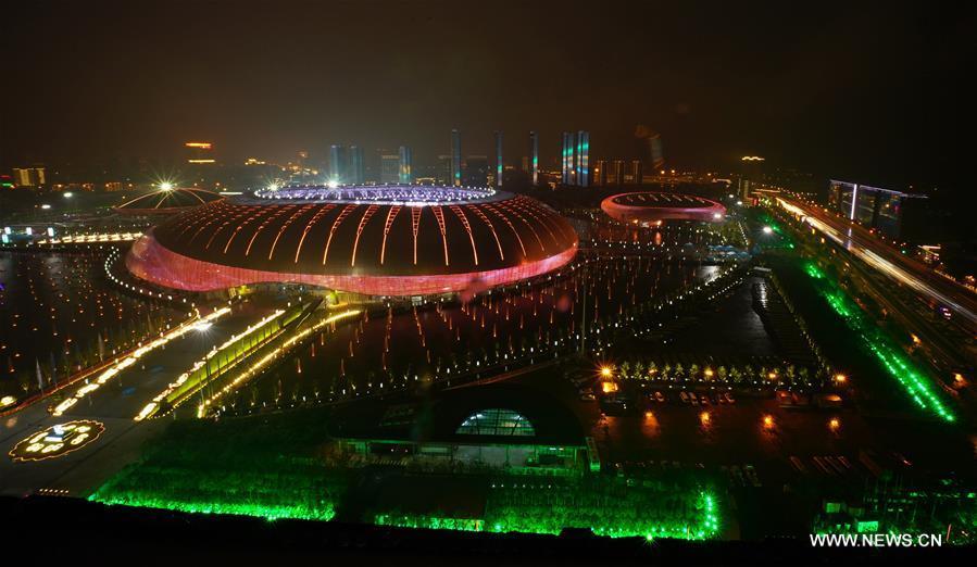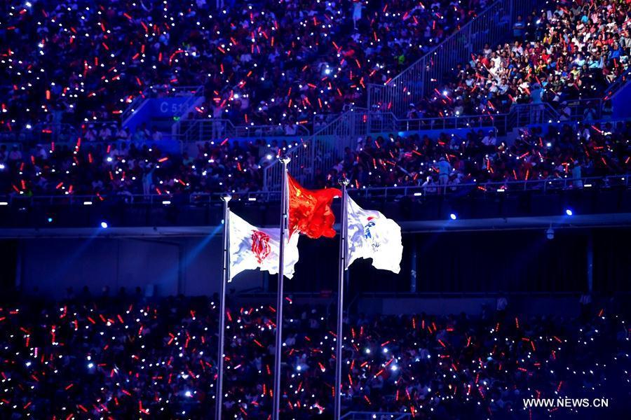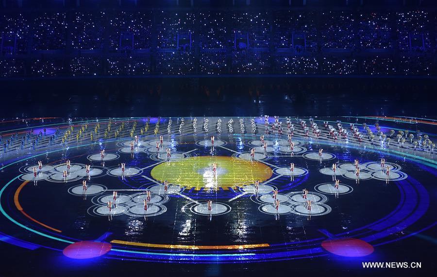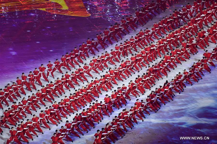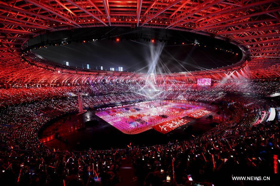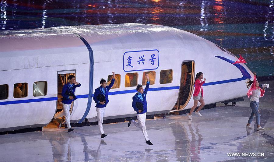Photo taken on Aug. 27, 2017 shows the scene of the opening ceremony of the 13th Chinese National Games in north China's Tianjin Municipality. (Xinhua/Zhao Ge)