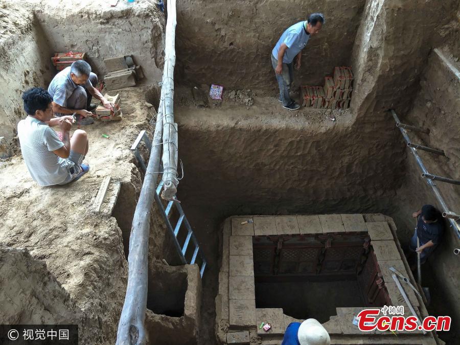 Tomb with striking carved bricks found in Shanxi(1/4)