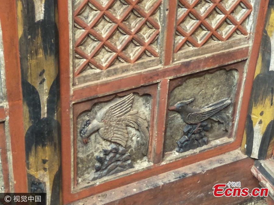 A close-up view of carved bricks at a tomb dating back to the Song Dynasty (960-1279) in Jishan County, North China’s Shanxi Province, Aug. 24, 2017. The tomb was found during the renovation of a farmer’s old house. The tomb’s four sides are decorated with bricks carved with vivid birds, flowers and figures. (Photo/VCG)