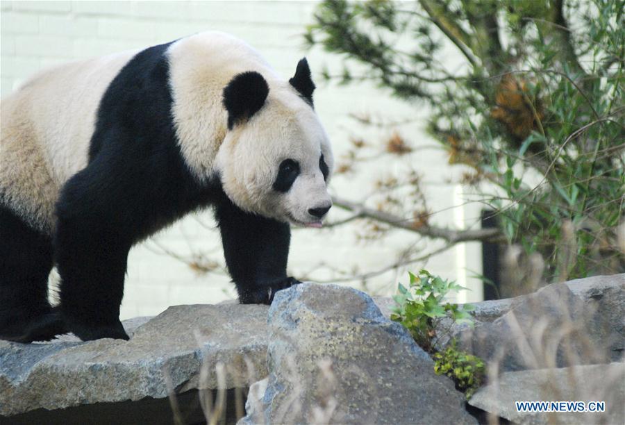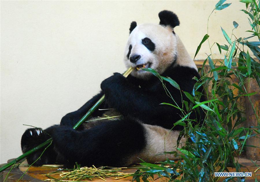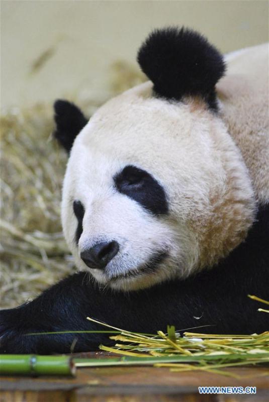 An undated photo provided by Edinburgh Zoo shows giant panda Tian Tian at Edinburgh Zoo, Scotland. Tian Tian, the only female Chinese giant panda in Britain, is pregnant, and a cub could be born in September, local media reported here on Aug. 24, 2017. Tian Tian, which means Sweetie in Chinese, was born on Aug. 24, 2003 at the Beijing Zoo in China. She is currently living with Yang Guang, meaning Sunshine in Chinese, at Edinburgh Zoo, Scotland. They are Britain's only pair of pandas. (Xinhua/Edinburgh Zoo)