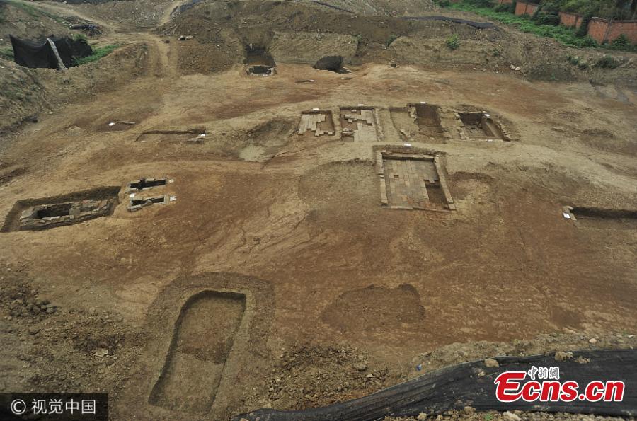 Excavations have taken place at a group of tombs found in Chengdu City, the capital of Southwest China’s Sichuan Province. Archeologists have found 75 tombs dating back from the Warring States Period (475 BC - 221 BC) to the Song Dynasty (960-1279). The finds vary in style, and include earth pits and brick chambers. The relics include bronze weapons, iron swords and pottery animal sculptures. (Photo/VCG)