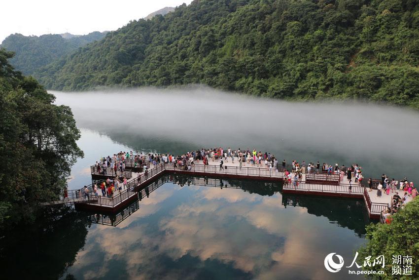 Photo taken on August 28, 2017 shows the beautiful scenery of Dongjiang Lake Scenic Area in Zixing City, Hunan province. It is a 5A scenic area in China, known for its mist at sunset and sunrise between the months of May and October. (Photo/People's Daily Online)