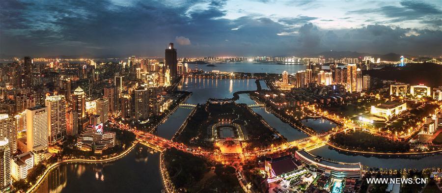 Aerial panoramic photo combined on Aug. 24, 2017 shows a part of Xiamen, a coastal city in southeast China's Fujian Province. The BRICS summit and the Dialogue of Emerging Markets and Developing Countries are to be held here from Sept. 3 to 5. (Xinhua/Song Weiwei)
