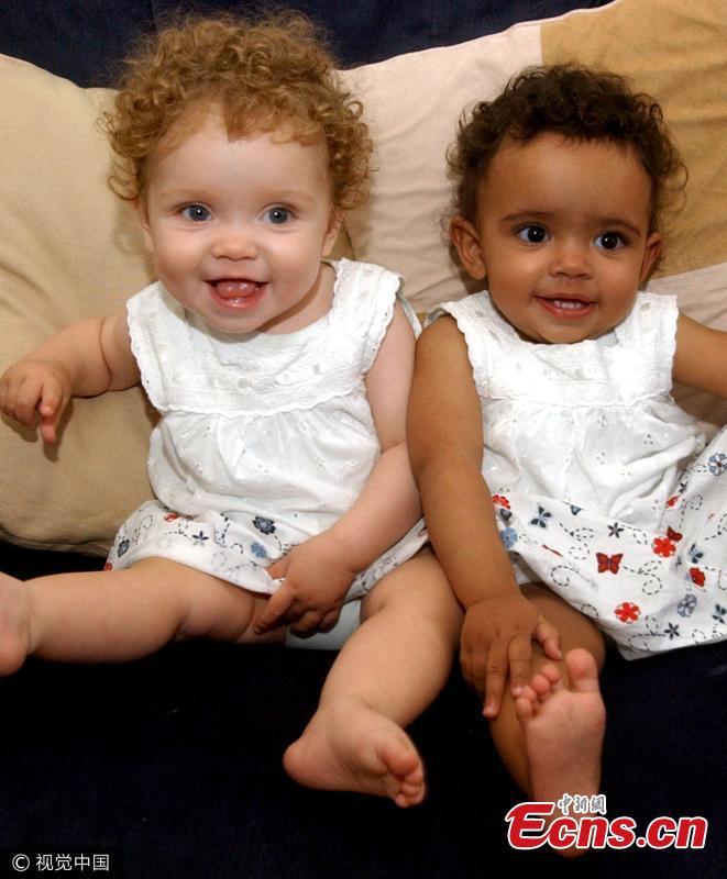 A pair of twins are set to turn heads when they start secondary school this week – as one is black and the other white. Million-to-one twins Marcia and Millie Biggs, 11, looked almost identical when they were born in July 2006 but a huge difference soon became apparent. As Millie became darker-skinned, blue-eyed Marcia took on a lighter complexion, growing blonde, curly hair. Mum Amanda, 46, has had to warn King Solomon International Business School in Aston, Birmingham, where the pair will start secondary school this week, that they are actually twins despite their appearance. Marcia has inherited her mother’s fair complexion and golden brown hair, while Millie takes after dad Michael, 50, who is of Jamaican origin. (Photo/VCG)