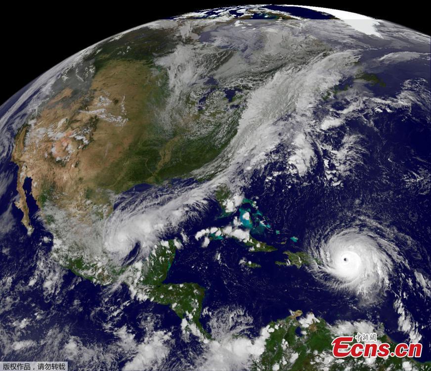 Hurricane Irma makes its way across the Atlantic Ocean in to the Caribbean -- a category 5 storm with winds as high as 185 miles per hour, Sept. 6, 2017. Hurricane Irma, one of the most powerful Atlantic storms in a century, howled past Puerto Rico on Wednesday after thrashing several smaller Caribbean islands with roof-ripping winds, drenching rains and pounding surf on a collision course with Florida. (Photo/Agencies)