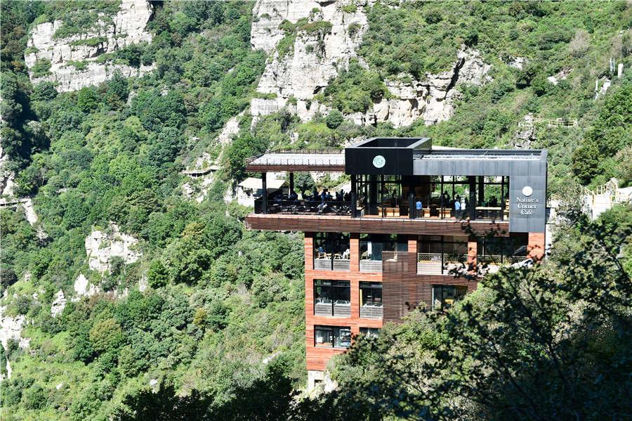 The scenic area has also become well-known for its glass skywalks. The spot built in September 2014 features the longest, widest and highest glass skywalk nationwide, standing at an altitude of 1,900 meters. In August 2015, the scenic area opened another glass skywalk, standing at an altitude of 1,600 meters, which was also the first double-deck glass bridge in China.