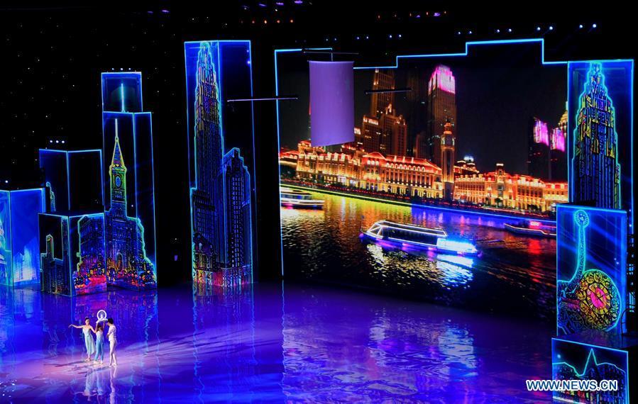 Photo taken on Sept. 8, 2017 shows the Olympic rings at the closing ceremony of the 13th Chinese National Games in north China's Tianjin Municipality. (Xinhua/Yue Yuewei)