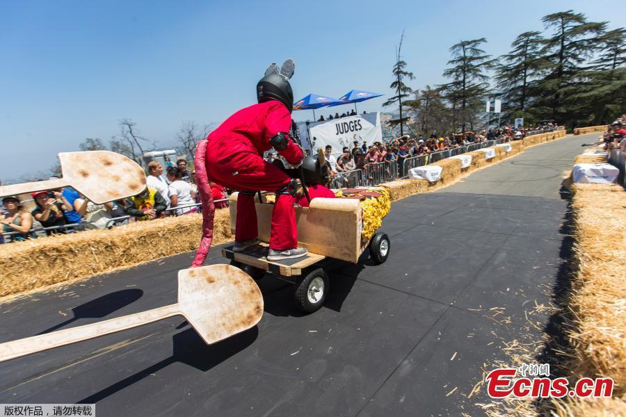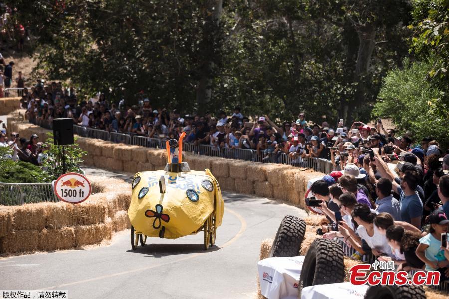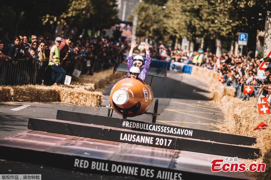 A competitor drives a homemade vehicle without an engine during the Red Bull Soapbox Race in Lausanne, Switzerland, Sept. 10, 2017. (Photo/Agencies)