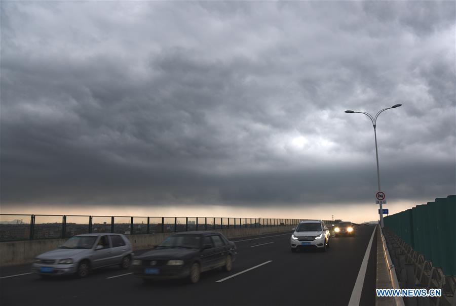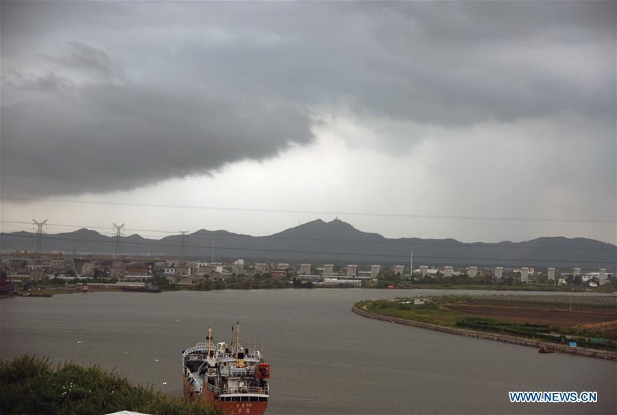 Photo taken on Sept. 11, 2017 shows dark clouds over Taizhou, east China's Zhejiang Province. China's National Meteorological Center said on Tuesday Typhoon Talim would intensify to a super typhoon and is likely to hit China's southeast coast on Thursday or Friday. (Xinhua/Liang Minhui)