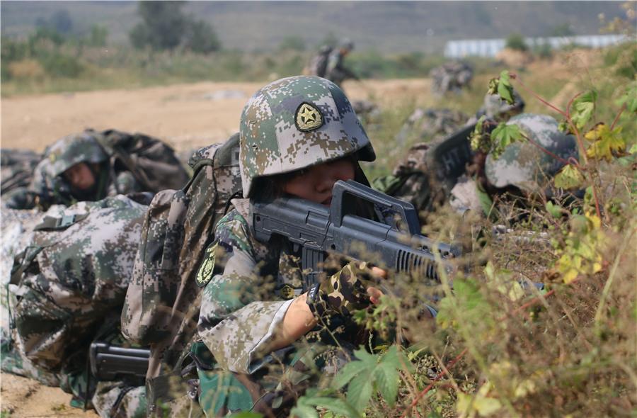 Participants at a special training camp practice handling a chemical weapon attack in Beijing. From Monday to Thursday, 300 freshmen and sophomores from 31 universities in Beijing will attend the camp, which teaches long-distance marching, survival in the wild, shooting and rapid response during emergencies. (Photo/China Daily)