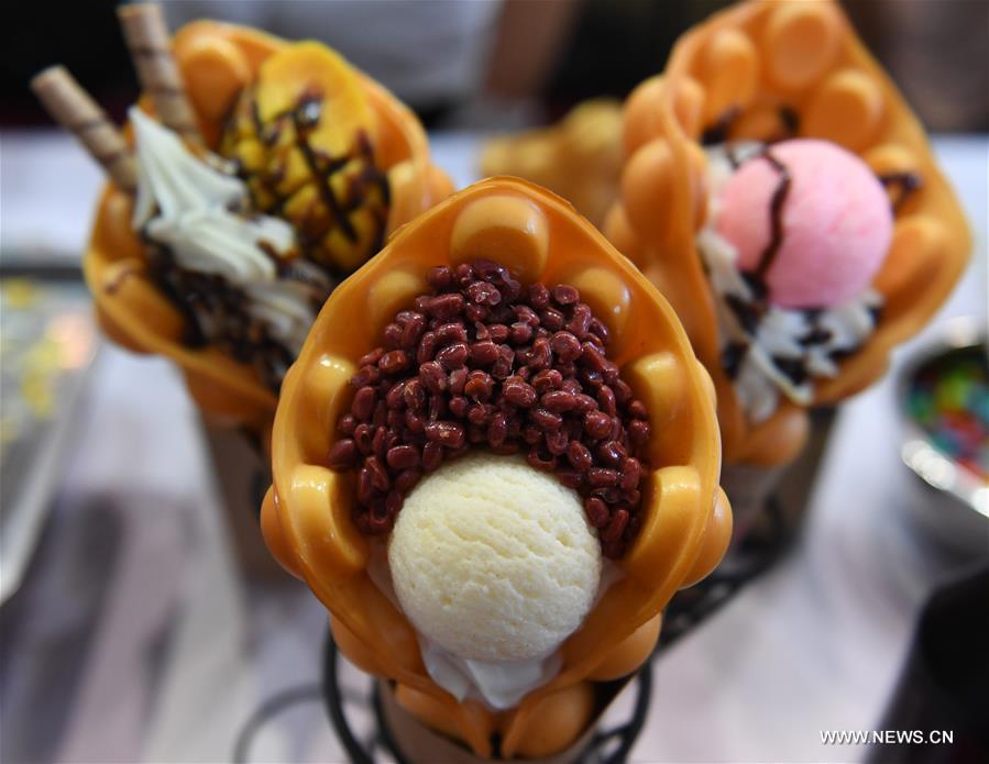 Photo taken on Sept. 14, 2017 shows Singaporean dessert displayed during the 14th China-ASEAN Expo in Nanning, capital of south China's Guangxi Zhuang Autonomous Region. The 14th China-ASEAN Expo opened here Tuesday, highlighting trade and investment among China, ASEAN and other countries along the Belt and Road.(Xinhua/Bao Feifei)