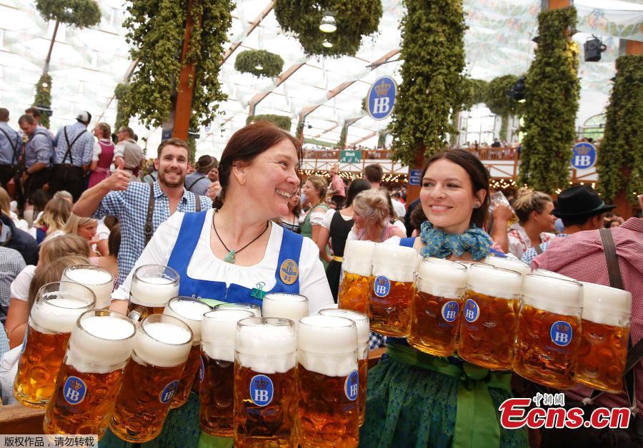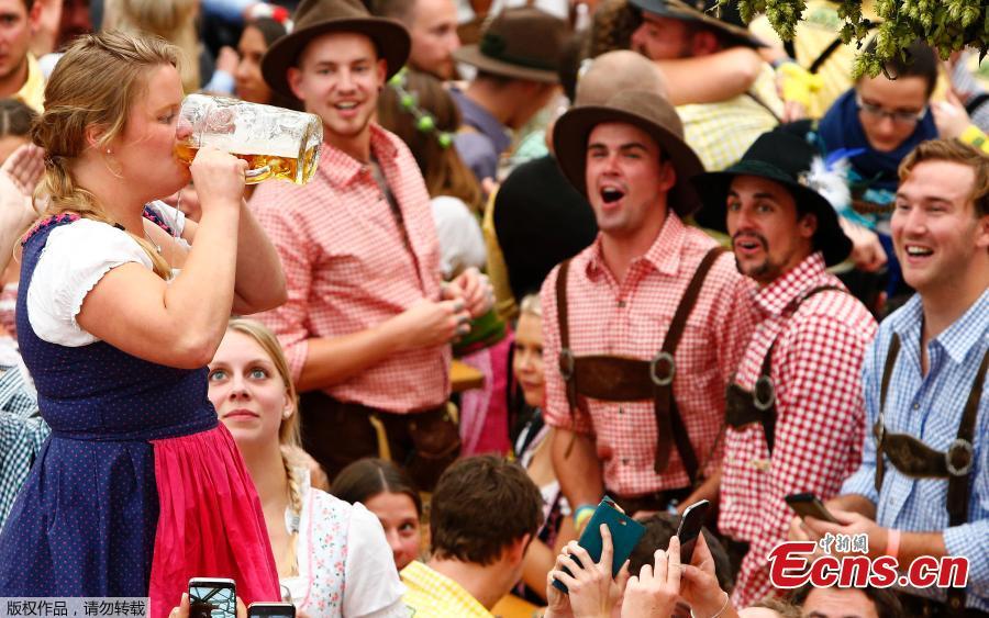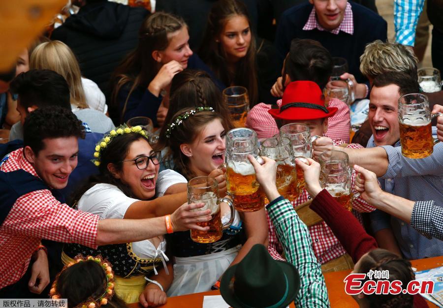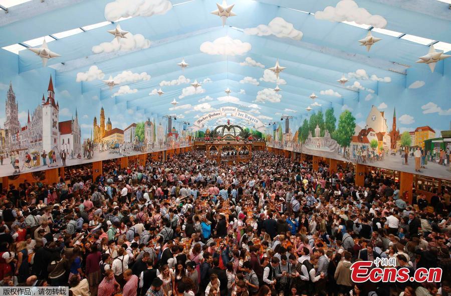 Visitors gather in a tent during the opening day of the 184th Oktoberfest in Munich, Germany, September 16, 2017. (Photo/Agencies)