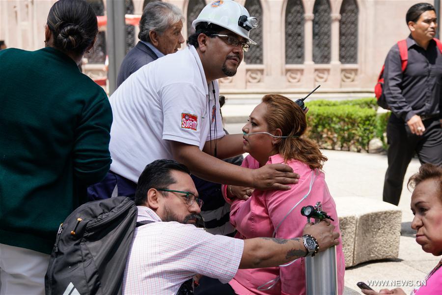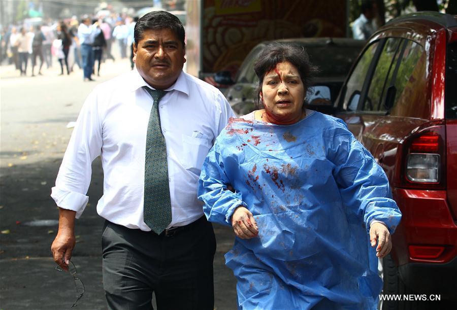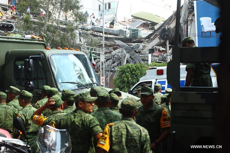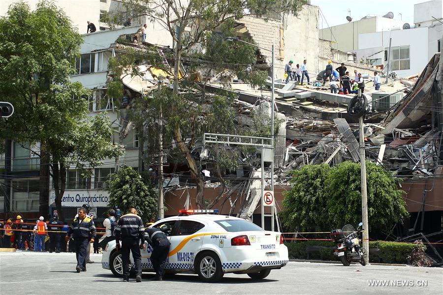 People inspect a collapsed building after an earthquake in Mexico City, capital of Mexico, on Sept. 19, 2017. More than 100 people were killed in a powerful 7.1-magnitude earthquake that hit central Mexico on Tuesday, and the number of deaths is expected to rise due to the scale of the quake. (Xinhua/Fernando Ramirez)
