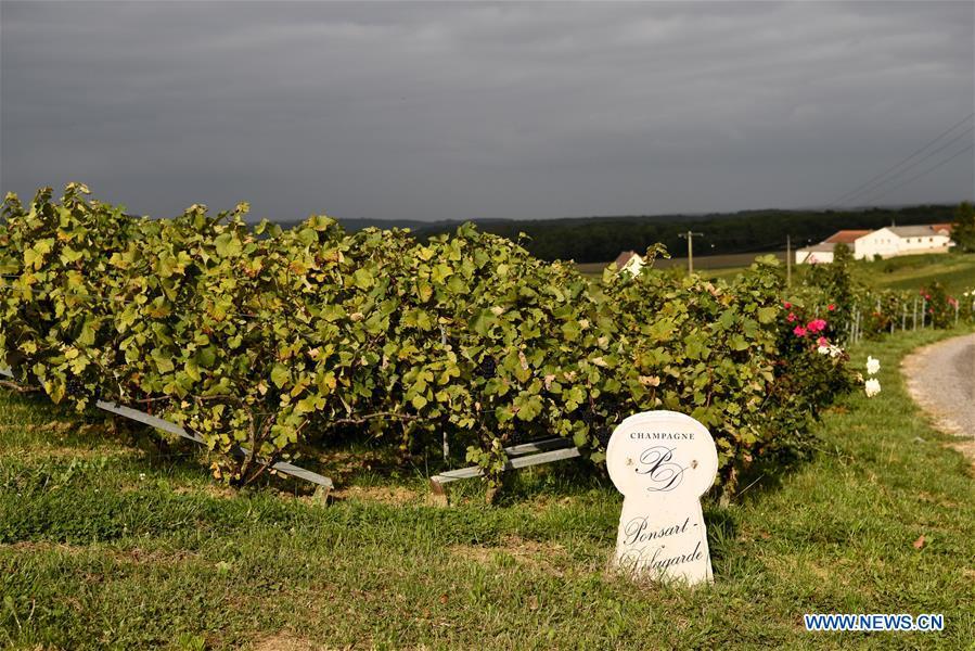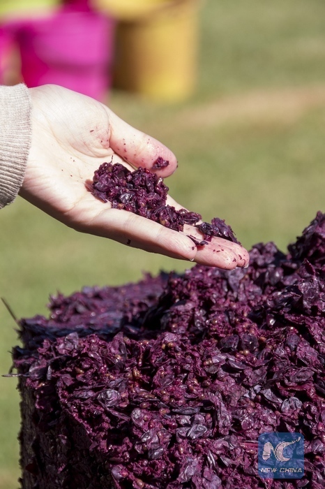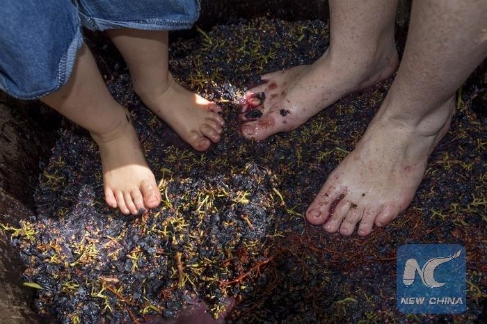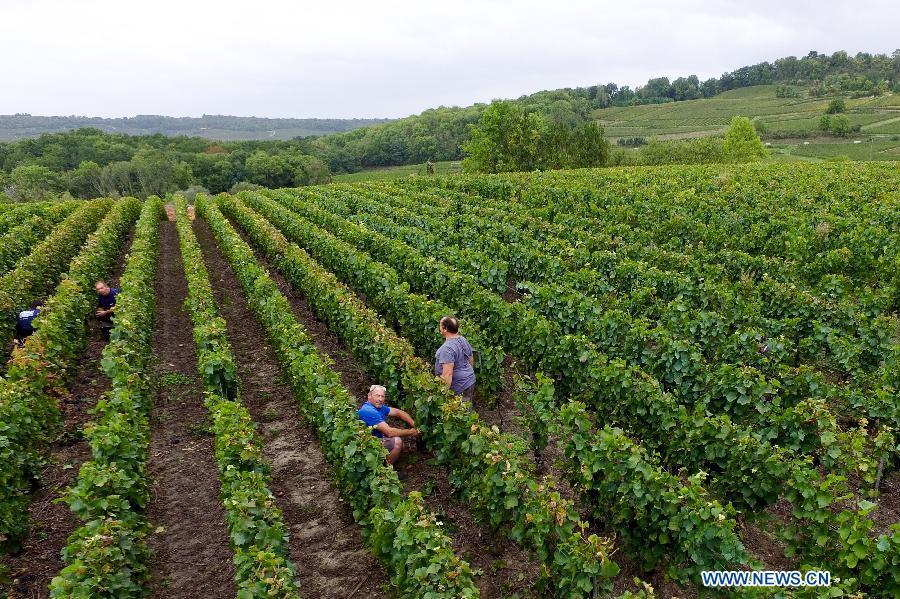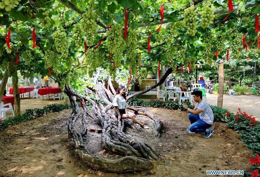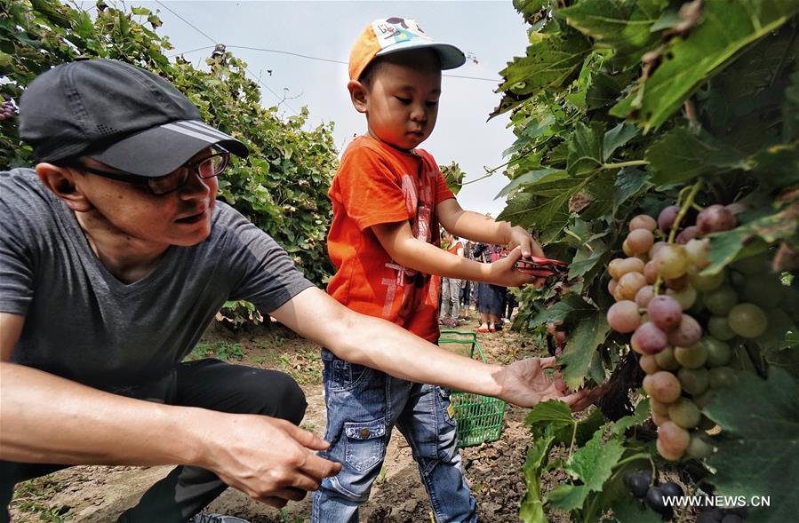 Palestinian farmers harvest grapes in the field during the harvest season in Gaza City, on July 19, 2017. (Xinhua/Wissam Nassar)