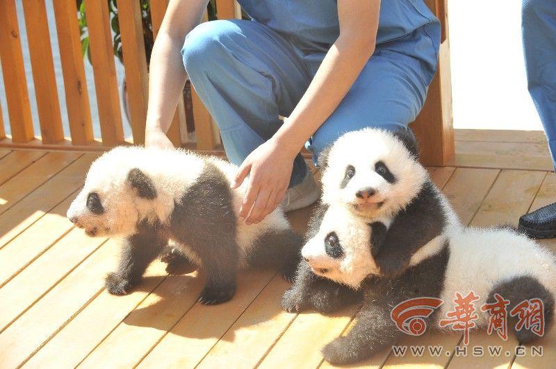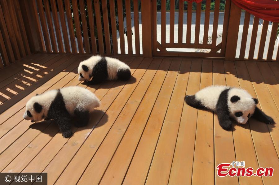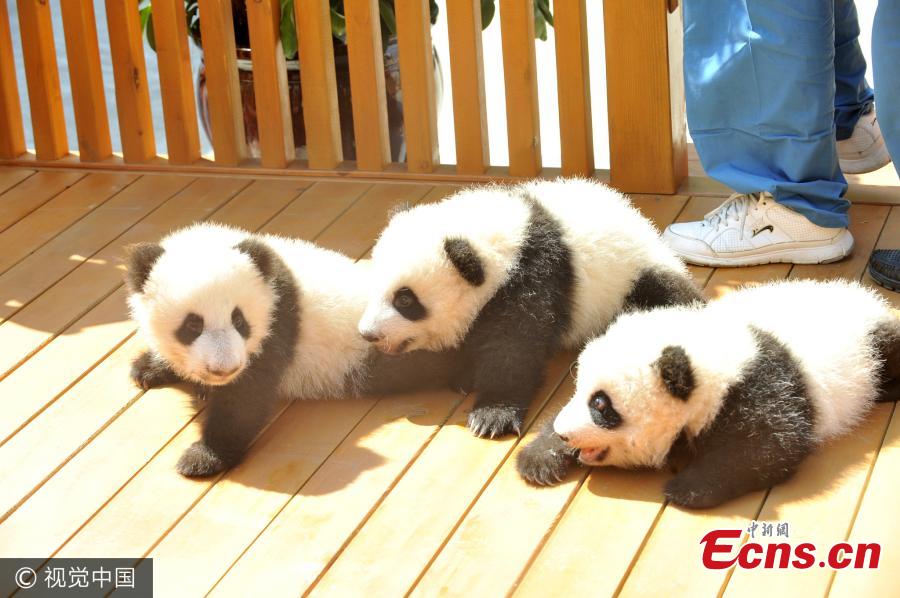 Northwest China's Shaanxi province launched a naming campaign Thursday, asking fans to name its three newest panda cubs. The public can suggest names via phone, email or instant messaging platform QQ, before Oct 20, according to Dang Shuangren, deputy head of the provincial forestry department. Dang said the final names would be announced by the end of October. The three pandas include twin cubs given birth by a panda named Ai Bang on June 12 at the breeding and research center for endangered wild animals in Zhouzhi county, Shaanxi. Another baby panda was delivered by a panda called Zhu Zhu on August 21. (Photo/VCG)