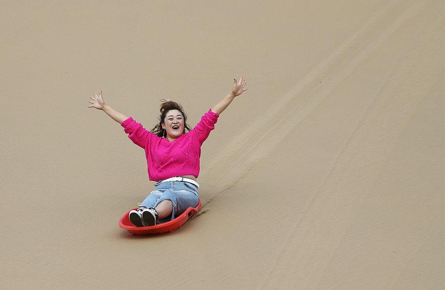 Camels in the Kubuqi Desert. (Photo/China Daily)