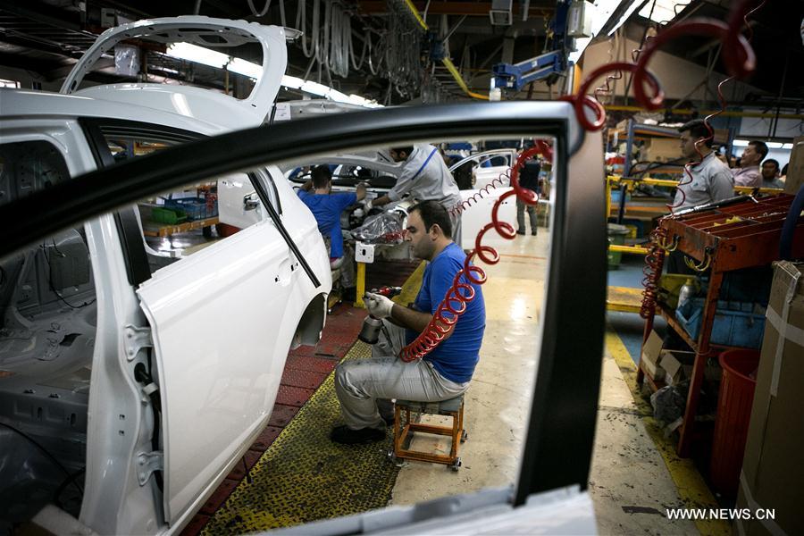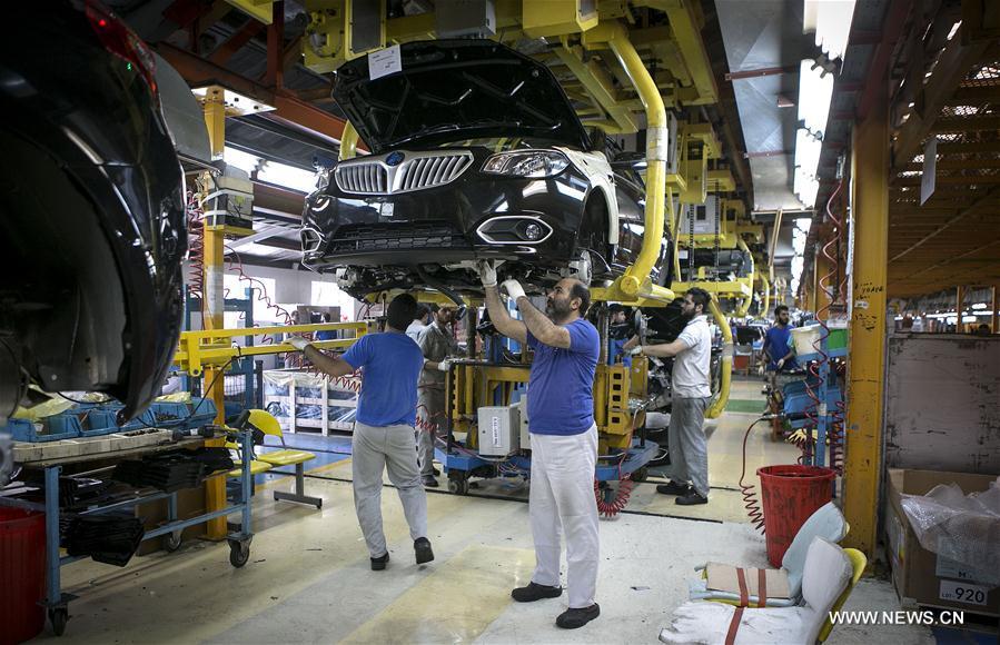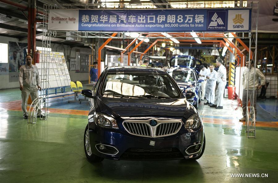 Iranian employees work on a Brilliance car at an assembly line of Iran's Pars Khodro supported by China's Brilliance Auto in Tehran, Iran, Sept. 23, 2017. The two car companies claimed the success of Brilliance Auto exporting 80,000 units to Iran on Saturday. (Xinhua/Ahmad Halabisaz)