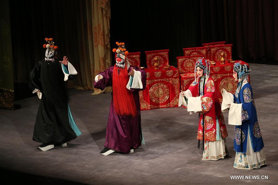 Artists from China National Peking Opera Company perform Female Generals of the Yang Family at the Athens Concert Hall in Greece, Sept. 17, 2017. The electrifying performance was part of a series of events staged this year for the 2017 Greece-China Year of Cultural Exchanges and Culture Industry Cooperation. (Xinhua/Marios Lolos)
