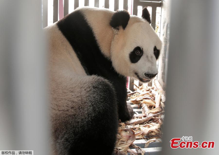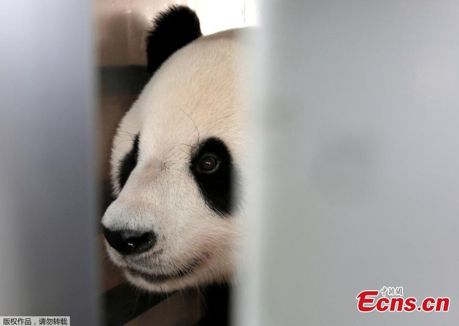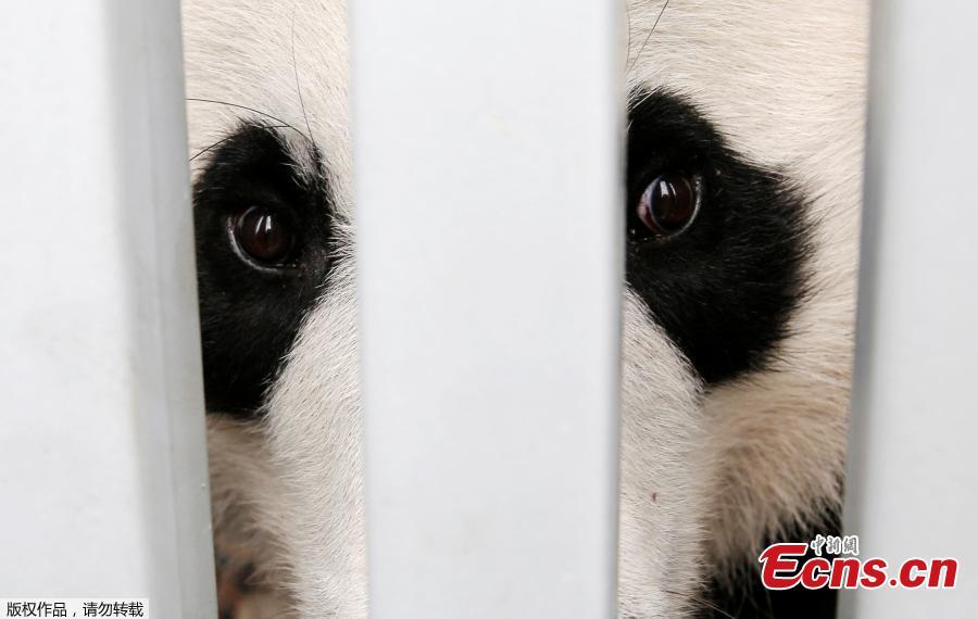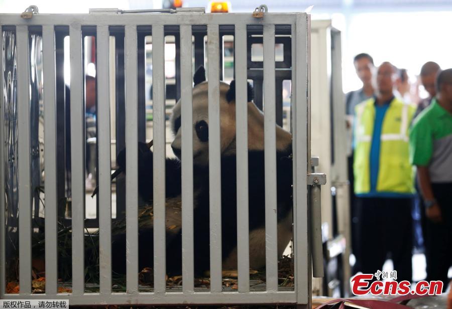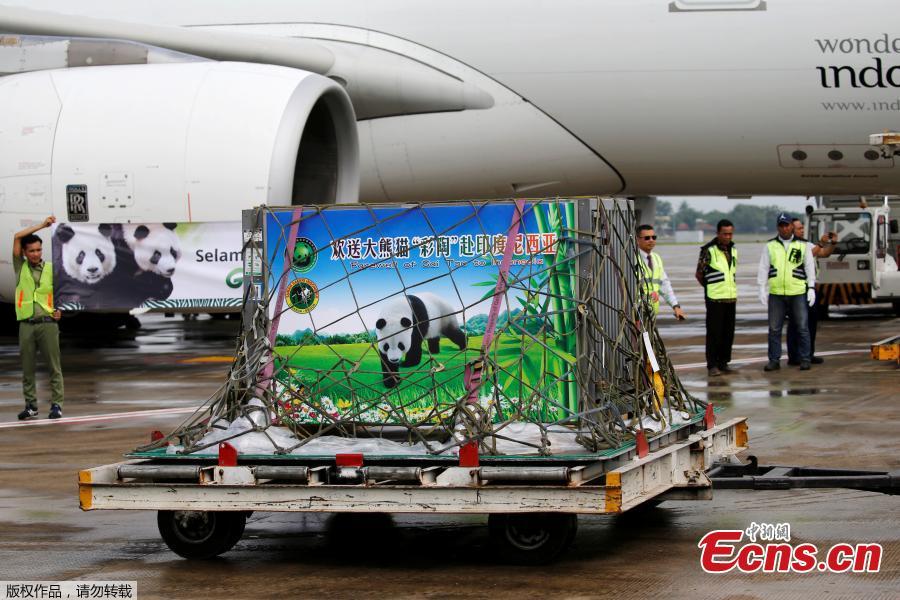 A giant panda on a 10-year loan from China is seen during a welcoming ceremony at Soekarno Hatta airport in Tangerang, Indonesia, September 28, 2017. Two pandas named Caitao and Huchun were born at the Ya'an Bifengxia base, part of the China Conservation and Research Center for the Giant Panda in Sichuan. The pair of giant pandas will live in a 4,800-square-meter panda park at Taman Safari Indonesia for 10 years. (Photo/Agencies)