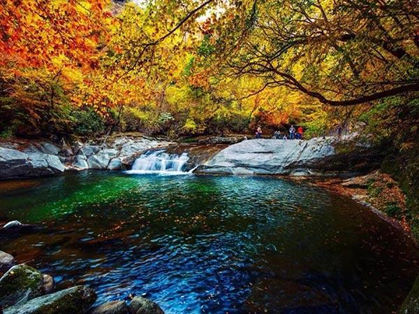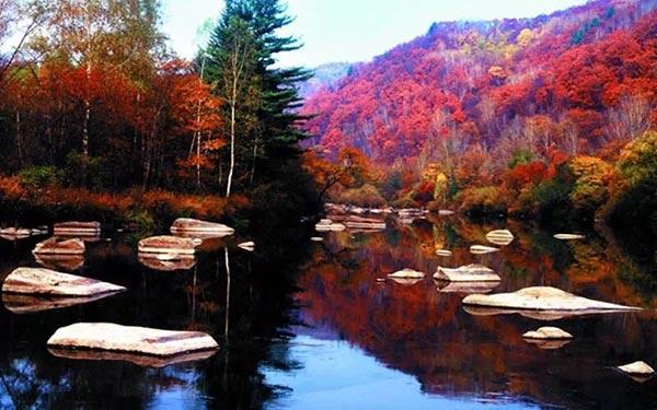 The scenery begins changing in late September and lasts for about a month. At first, it is dark yellow. Then, after only a few days, the maple leaves gradually turn bright red, drawing respect and admiration.