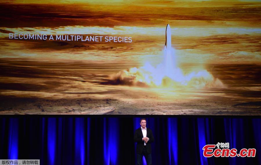 Elon Musk, Chief Executive Officer (CEO) of Space Exploration Technologies Corporation (SpaceX), speaks on the final day of the 68th International Astronautical Congress (IAC) in Adelaide, Australia, on Sept. 29, 2017. SpaceX unveiled its plans to put humans on Mars as early as 2024 in Australia on Friday. (Photo/Agencies)