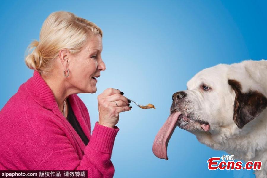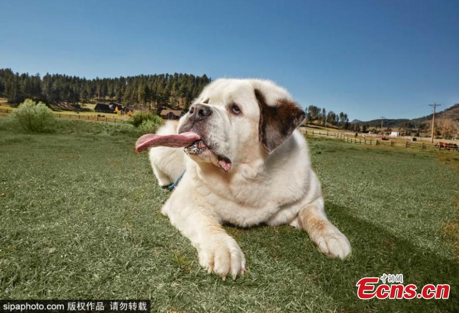 An canine with a ridiculously long tongue has entered the Guinness World Record books. Mochi “Mo” Rickert, an eight-year-old St. Bernard from Sioux Falls, South Dakota, has set a new record with a tongue measuring a whopping 18.58 cm (7.31 in) in length. (Photo/Sipaphoto)