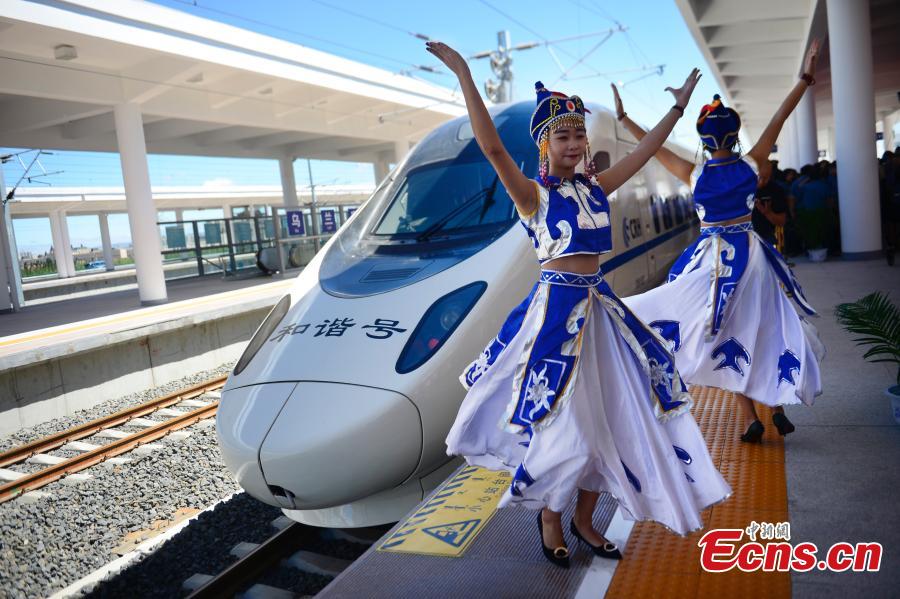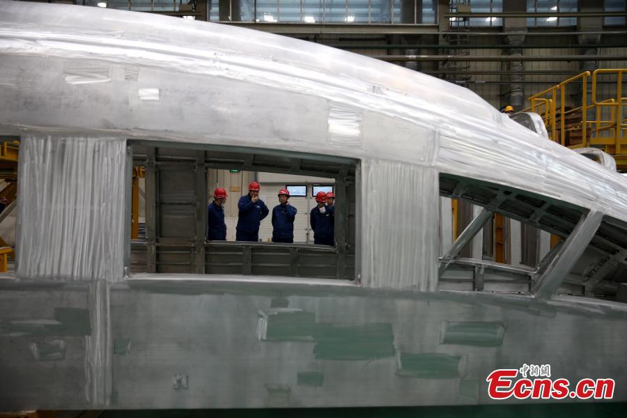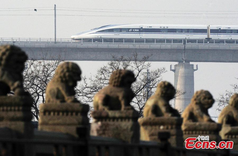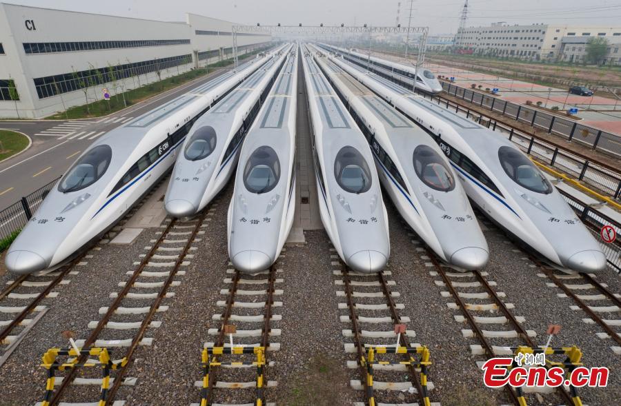 High-speed trains made in Qingdao city, Shandong Province are ready for operation before Spring Festival in 2014. (Photo: China News Service/Xu Chongde)